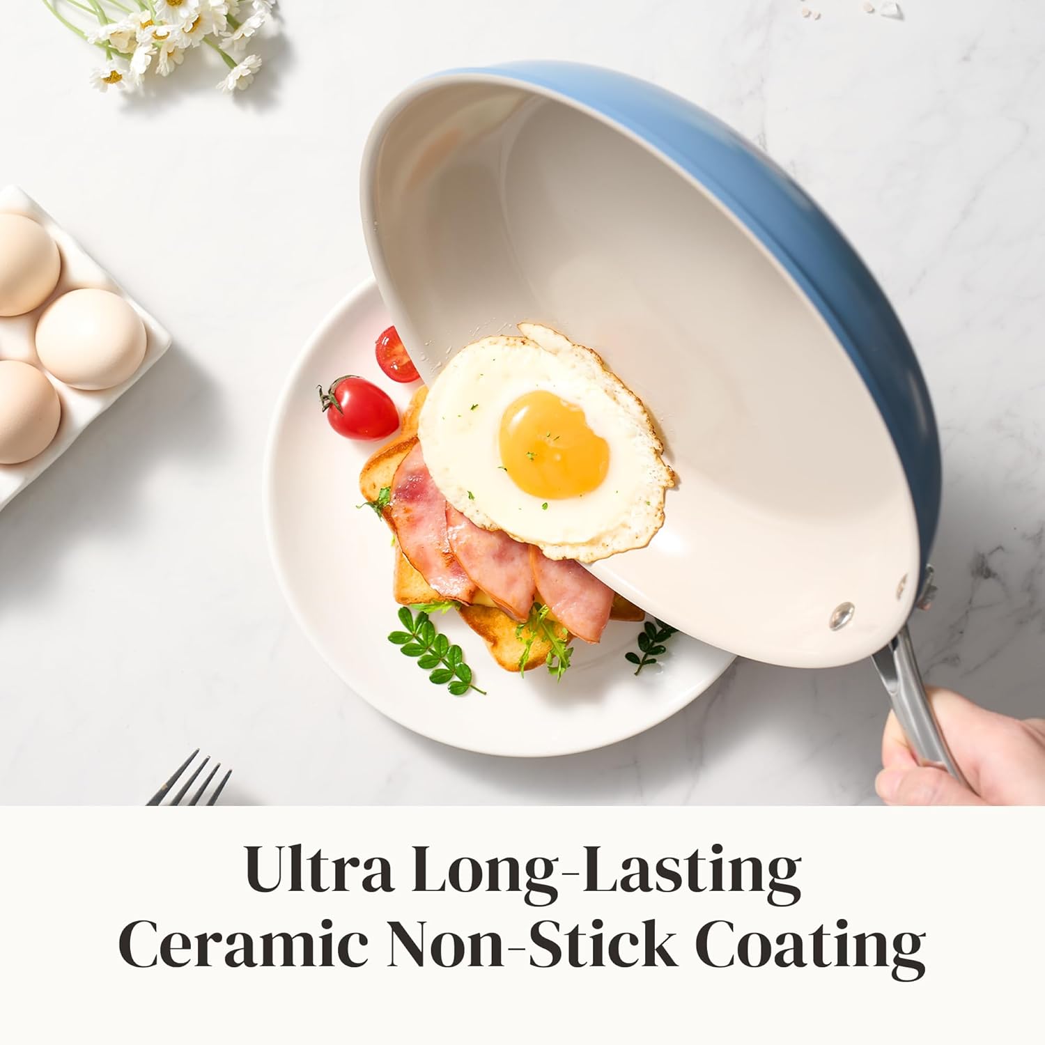 - CERAMIC NON-STICK COATING: Our innovative cooking surface undergoes a triple-layer ceramic coating process, durable and totally safe. The non stick frying pans excels in delivering outstanding nonstick performance, enabling you to prepare your favorite dishes with minimal oil or butter usage