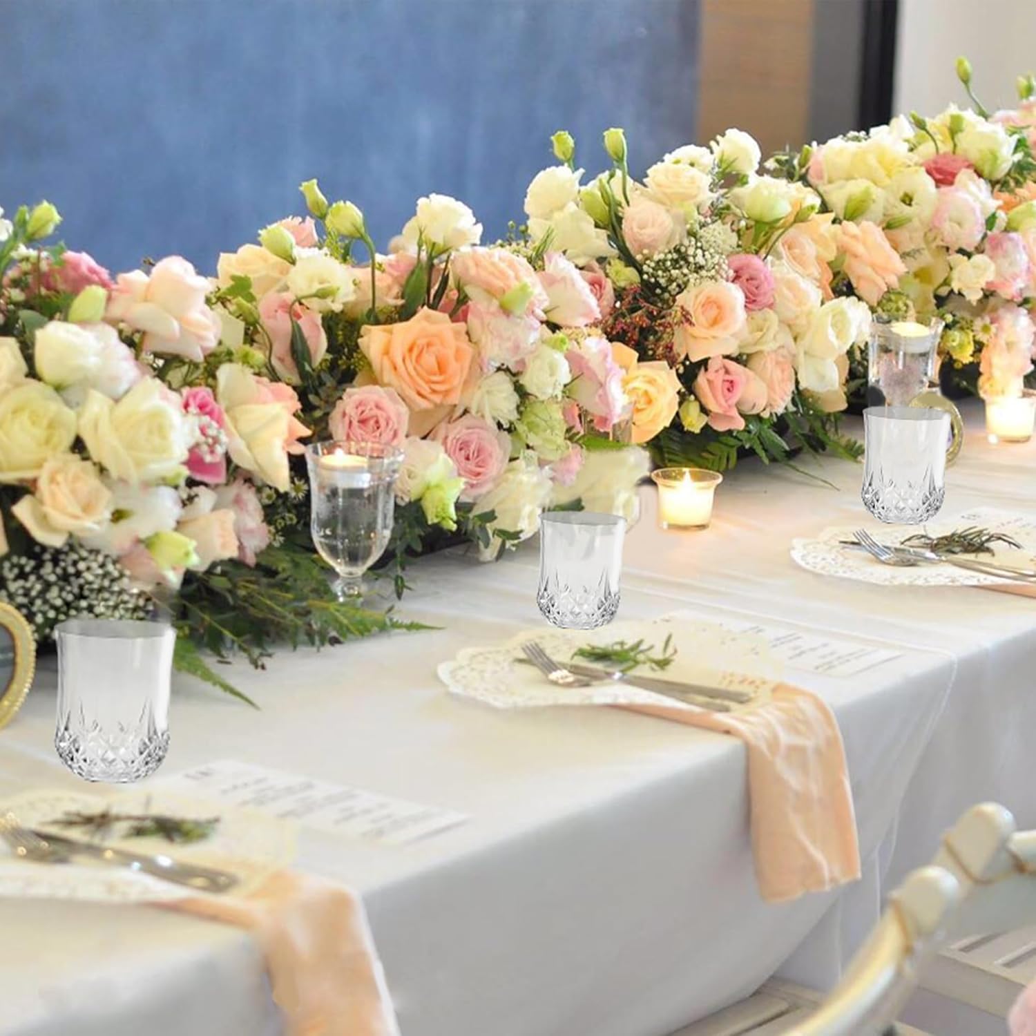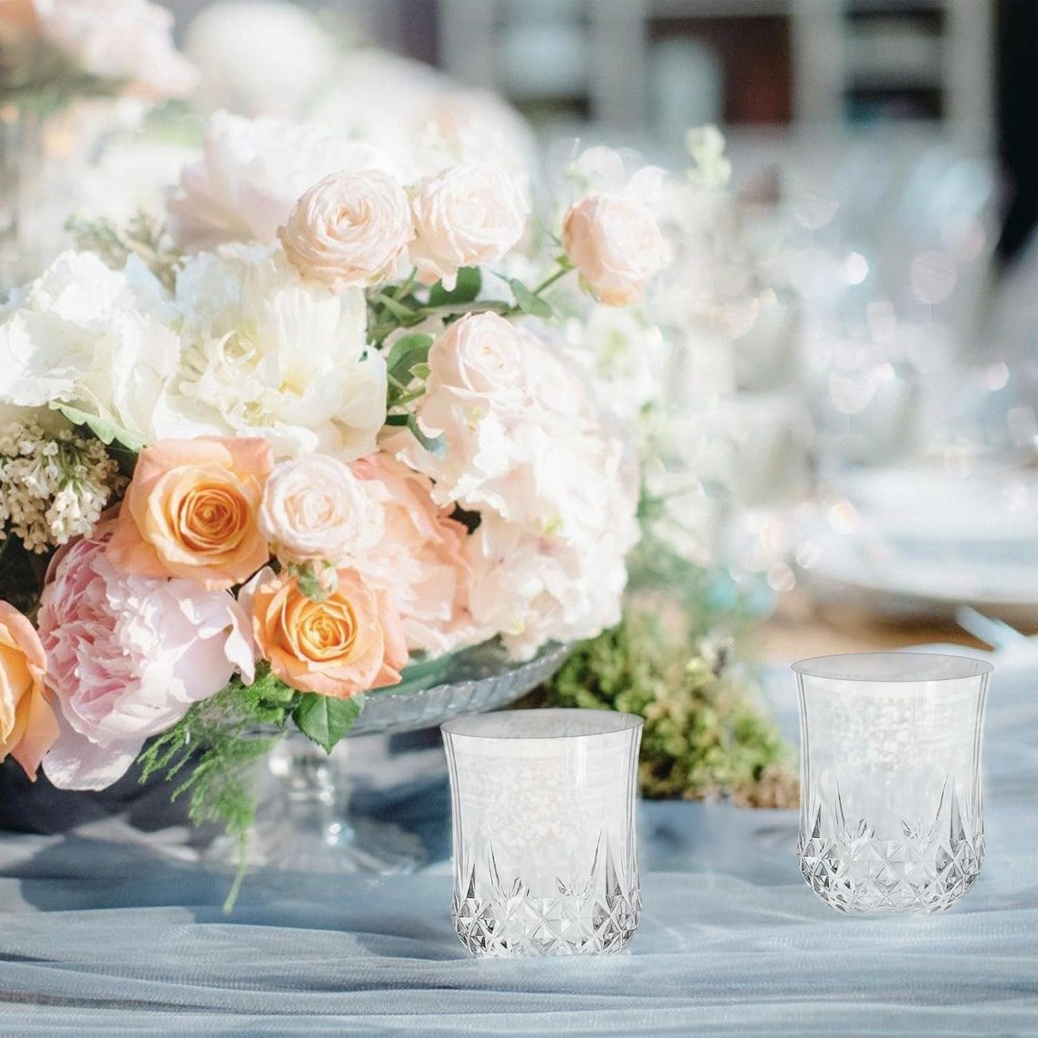 - 🍷🍷🍷 Package Includes: 24 pack transparent elegant and exquisite stemless cups. Each stemless wine glass is meticulously crafted with retro patterns. The abundant quantity can meet the needs of your wedding, party or other large-scale events. The stemless cups add a touch of refinement to any table decoration