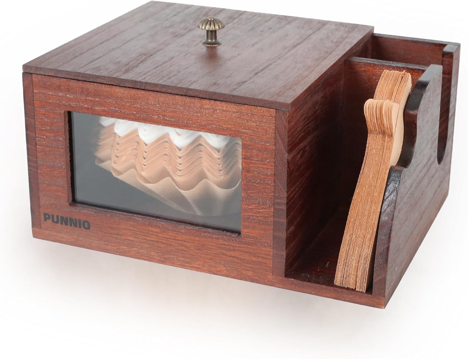 - Made of Solid Wood: Crafted from high-quality solid wood, our coffee filter holder is durable and built to last. It resists breaking and deformation, ensuring long-lasting use. The smooth interior and surface make cleaning effortless—just wipe with a damp cloth. The thoughtful lid design keeps your coffee filters safe from dust, ensuring optimal preservation for years to come.