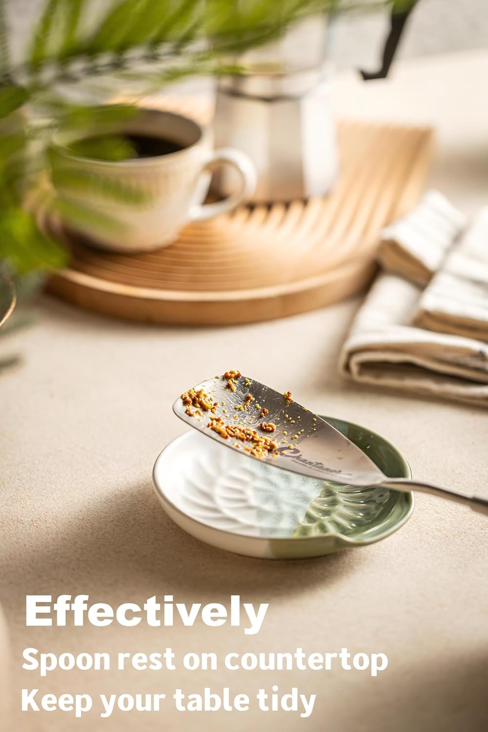 - Beautiful Color-Changing Finish - Our cute spoon rest isn't just practical - it's pretty too! The colors blend together like a grassland, and the spiral grooves keep your utensils from sliding around. It looks so nice you'll want to leave it out on your counter all the time