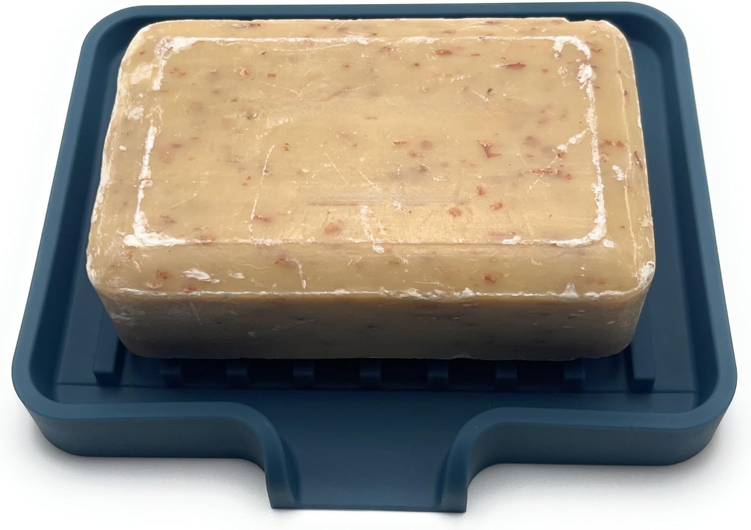 Happitasa Silicone Soap Dish Tray and Sponge Holder with Drain Chute, Pack of 2 | Bathroom and Kitchen Sink Organizer Caddy (Smoky Blue, 5.2"x4", 7.2 Ounces)