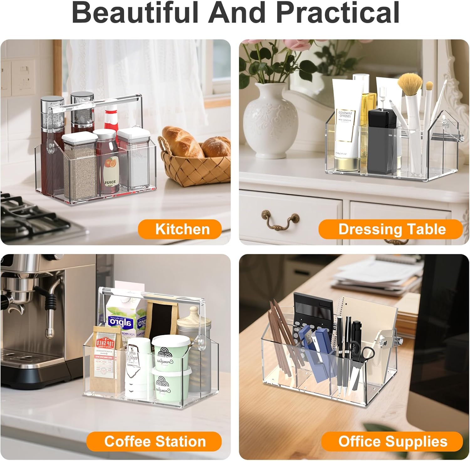 - 【Premium Acrylic Construction for Durability】 Crafted from 4mm-thick, scratch-resistant acrylic, this utensil holder offers sturdy storage with smooth, rounded edges. Four polished compartments keep cutlery, paper plates, and napkins neatly separated, blending sleek design with long-lasting functionality.
