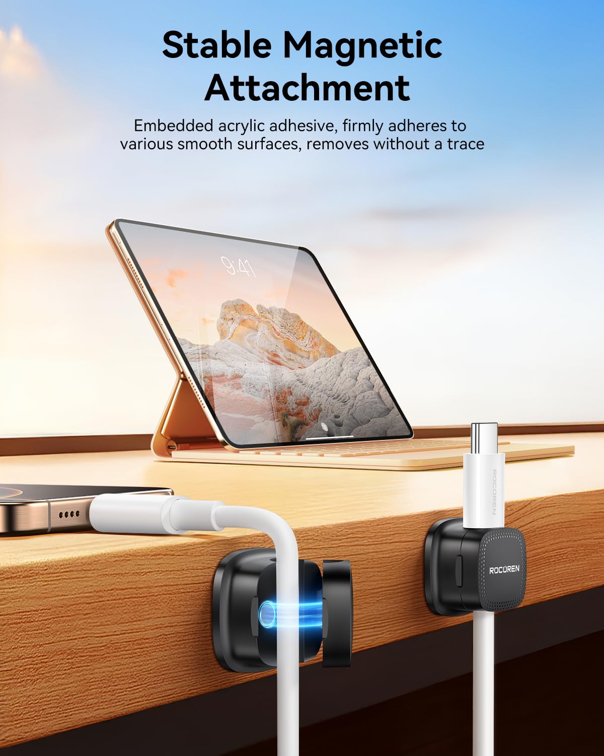 - High-Strength ABS Material: Rocoren magnetic cable management Passed 2000 gravity cycle tests (Lab-Tested Durability), the durability of the rubber material is 200% improved, and it is impact-resistant and corrosion-resistant. Installation tips: Please use alcohol cotton to clean the surface before use, press for 30 seconds to activate the glue, and let it stand for 12-24 hours to achieve the best viscosity (Maximum Adhesion)
