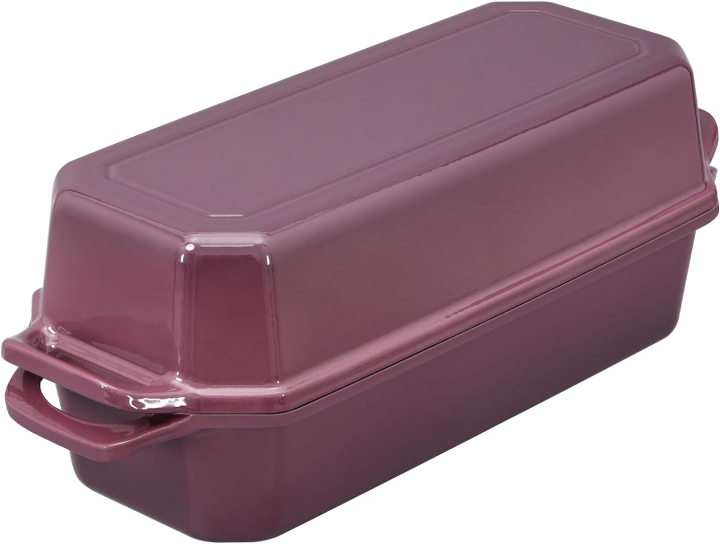 Bread Pan Cast Iron Loaf Pan with Lid Bread Loaf Pan 13x5 Inch Enameled Cast Iron Sourdough Bread Pan,Magenta