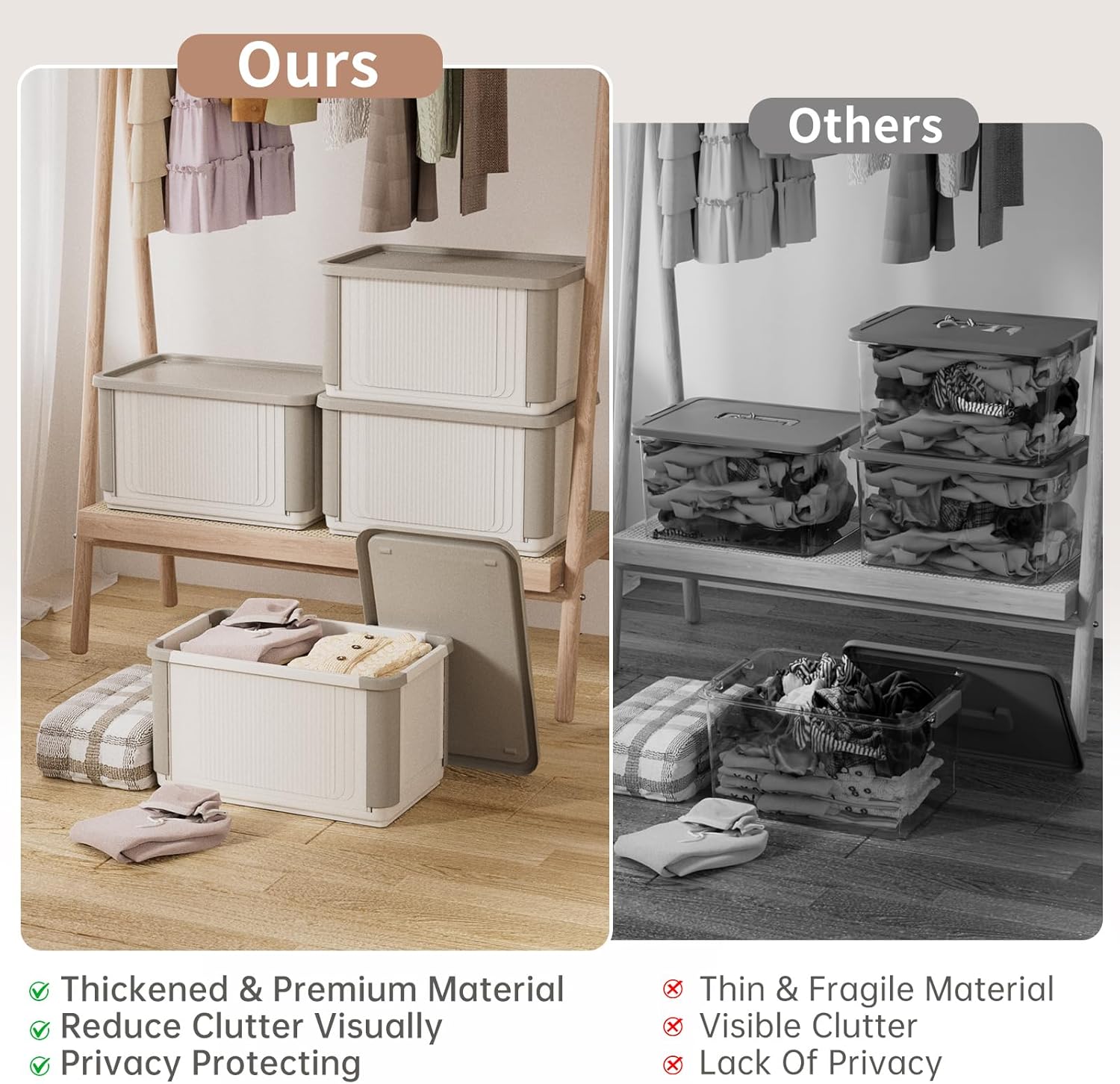 - Collapsible Storage Bin with lid: With foldable design, HAIXIN storage bin makes it possible to make good use of limited space. Stack them up for organizing seasonal clothes and seldom-used belongings or fold them up and hide under couches or narrow corners for space saving when not in use, freeing up more living space.
