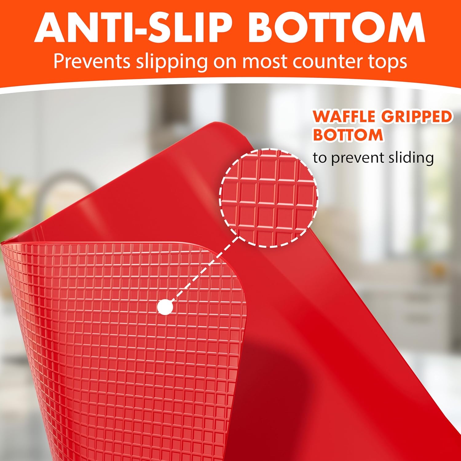 - [𝗕𝗨𝗜𝗟𝗧 𝗙𝗢𝗥 𝗞𝗜𝗧𝗖𝗛𝗘𝗡 𝗪𝗔𝗥𝗥𝗜𝗢𝗥𝗦] – Whether you’re meal prepping or plating like a pro, enjoy flexible mats that bend without breaking, perfect for sliding chopped ingredients right into the pot.