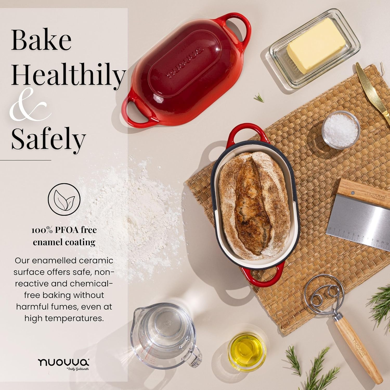 Dutch Oven For Sourdough Bread Baking – Enamelled Cast Iron Bread Loaf Pot – Oven Safe Non Stick Bread Pot – Rectangular, Red, 24cm x 16cm – by Nuovva
