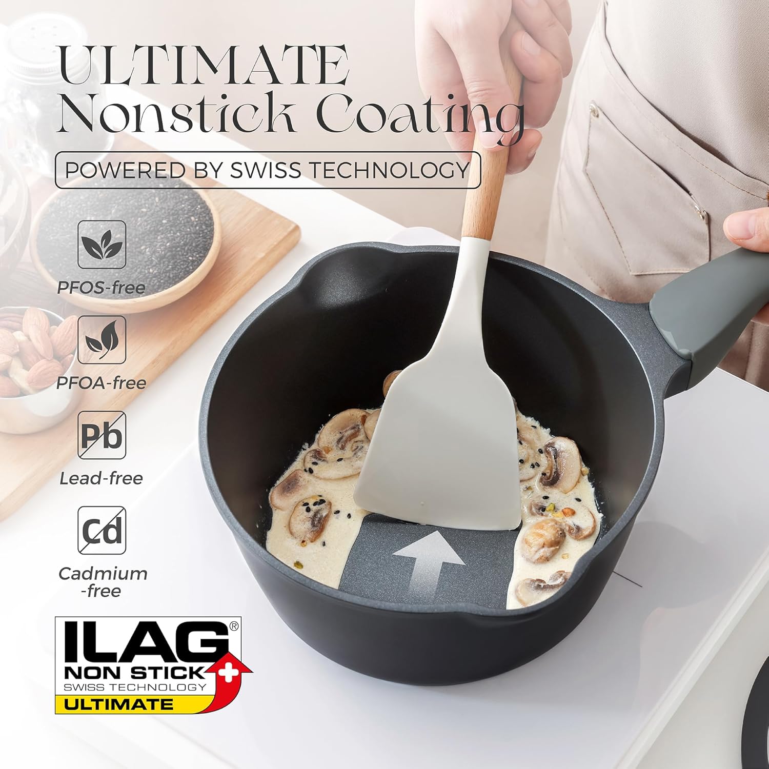 - ILAG ULTIMATE Coating: This sauce pot with lid is free of PTFE and PFOA. Perfect for healthy family meals with effortless food release and easy cleanup