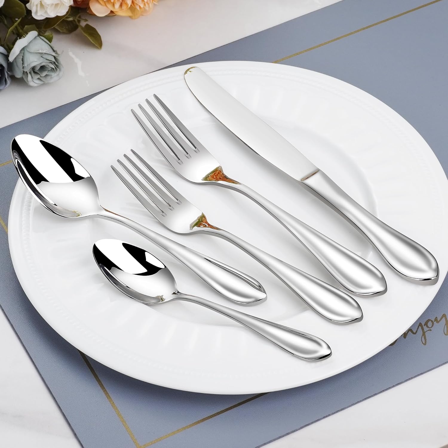 60-Pieces Heavy Duty Silverware Set for 12, 18/10 Stainless Steel Flatware, Forged Thick, Dishwasher Safe, Ideal for Gift