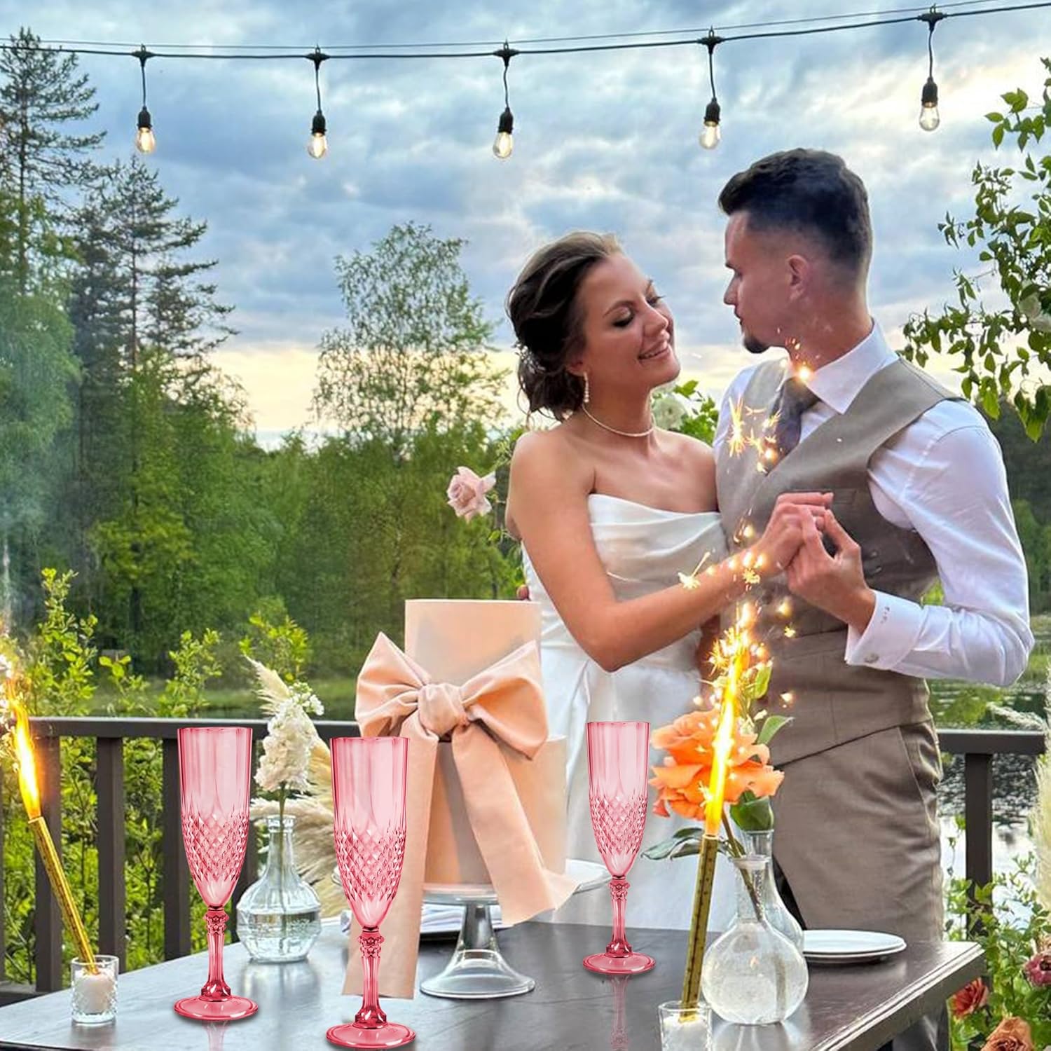 - Premium Plastic Materials: Plastic champagne glasses are made of sturdy plastic and, through the integration of unique design and exquisite craftsmanship, it exudes an unparalleled elegance and refinement. Its shape graceful; whether placed on a dining table or held in hand, disposable champagne flutes highlight the user's noble demeanor and taste