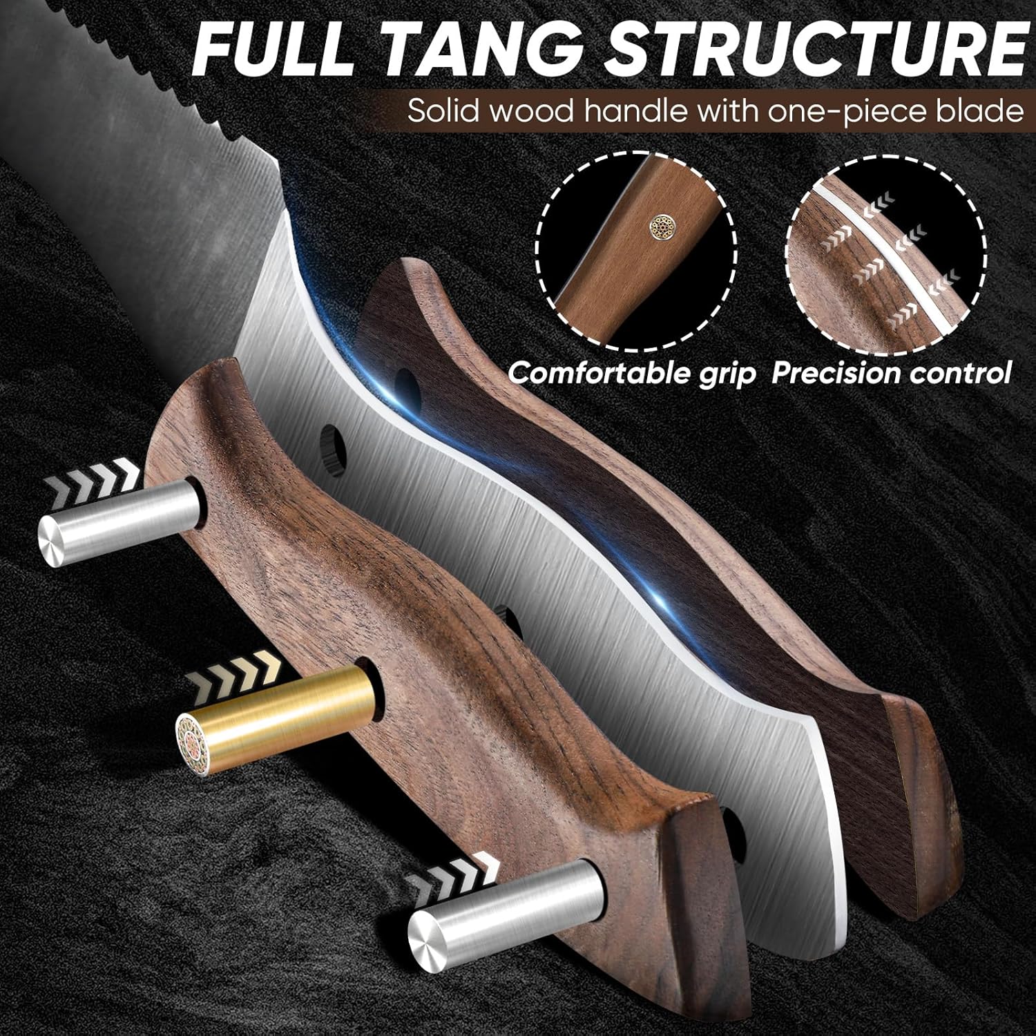 - Razor-Sharp Cutting Bread: With about 10-inch blade made from high-quality German high carbon steel, our bread knife offers exceptional durability and sharpness. Effortlessly slice through homemade bread for precise, efficient cuts every time