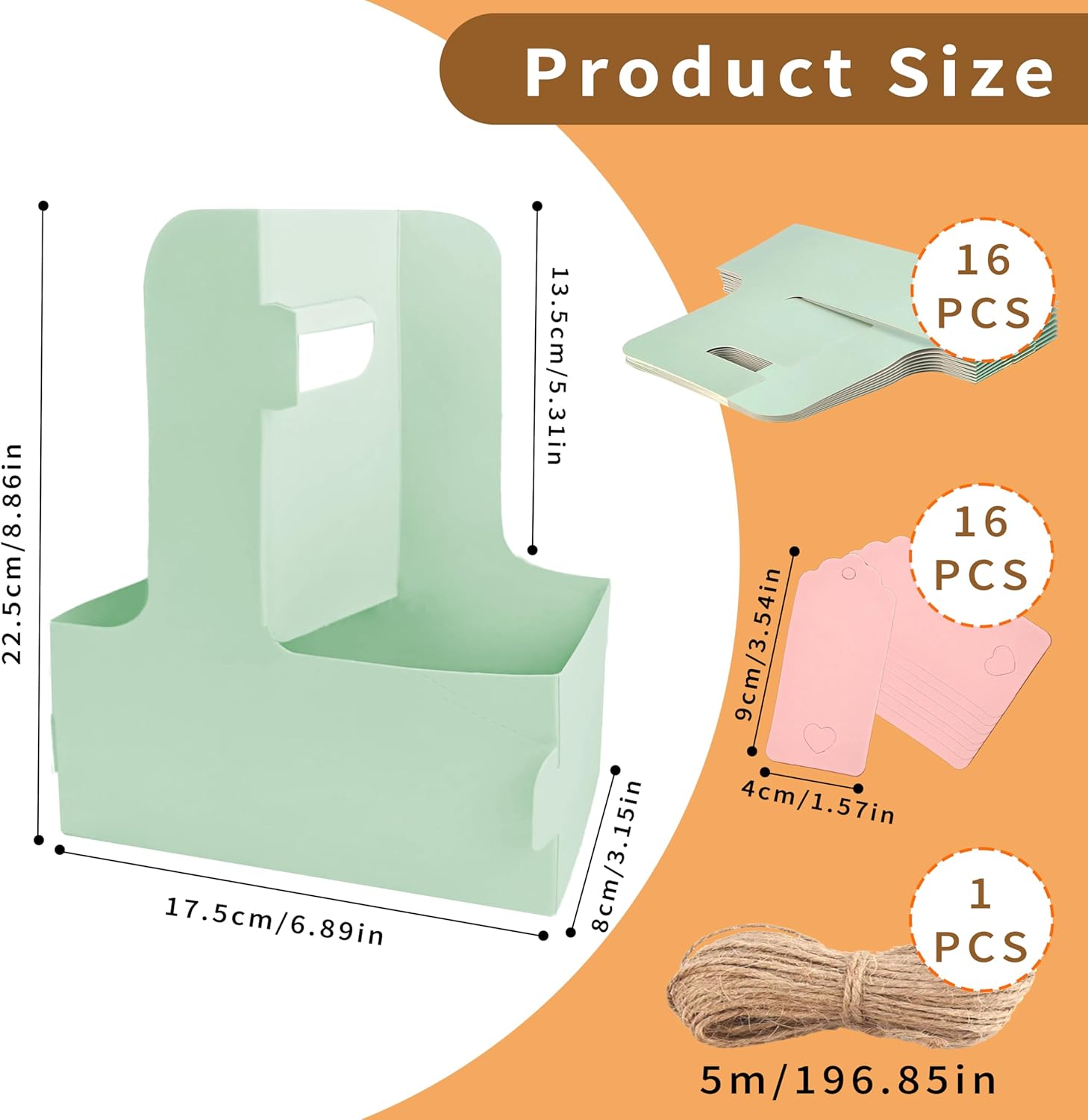 2 Cup Drink Carrier,16 Pack Coffee Cup Holders with Handle,Cardboard Cup Holders for Hot or Cold Drinks,Coffee Carrier with Ribbon and Card,Food Delivery Services and Bouquet(Green)