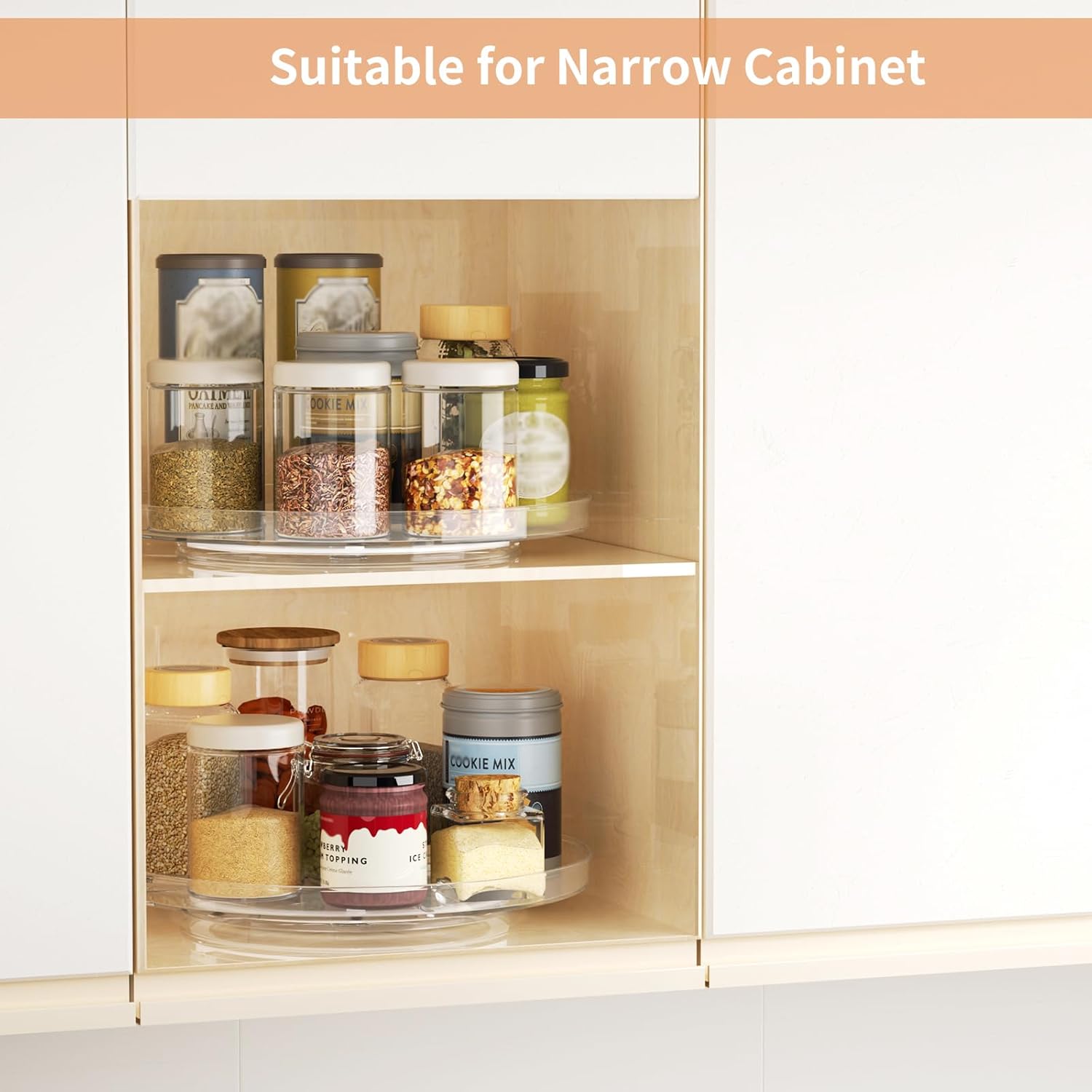 - Multiple Use: Suitable for kitchen seasoning storage, toiletries organization, limited cabinet storage, fridge drinks placement, etc. The turntable organizer is clear at a glance, making it easy to find the required items quickly