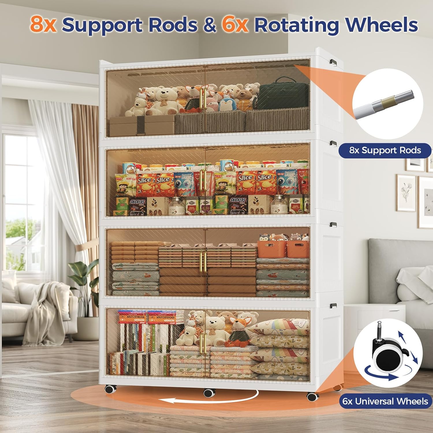 - 【Two Ways to Open & Magnetic Doors】The collapsible storage bins with lids and wheels feature a dual access way, allowing for both top and front door openings, and with clear brown windows for easy visibility. The super huge storage bins with open front doors are equipped with magnetic lock buckles to prevent dust from entering the cabinet.