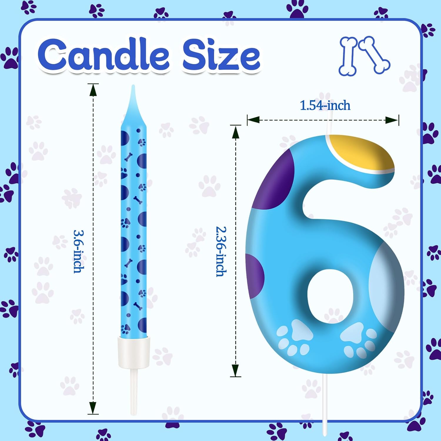 - Packaging: You will receive 12pcs and number 6 blue dog paw birthday candle comes individually wrapped for freshness and convenience! With a charming paw-print design and vibrant blue hues, these candles are perfect for creating a cohesive theme. Kids will adore the playful patterns, while parents love the hassle-free setup for dog-themed birthday parties!