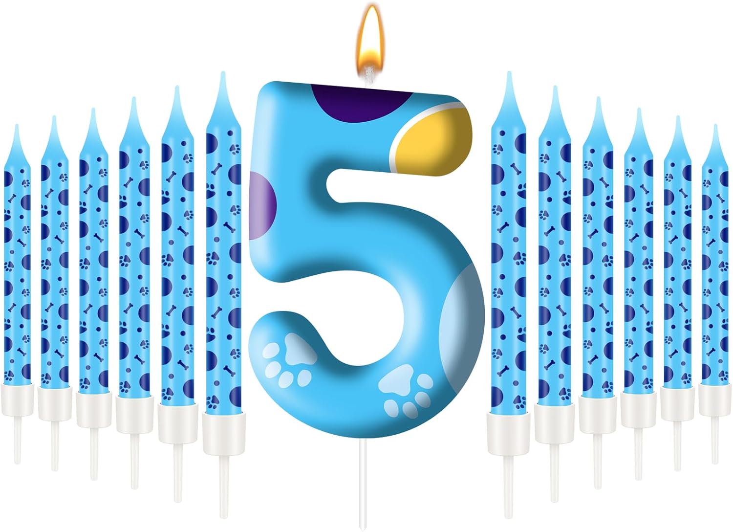 - Packaging: You will receive 12pcs and number 5 blue dog paw birthday candle comes individually wrapped for freshness and convenience! With a charming paw-print design and vibrant blue hues, these candles are perfect for creating a cohesive theme. Kids will adore the playful patterns, while parents love the hassle-free setup for dog-themed birthday parties!