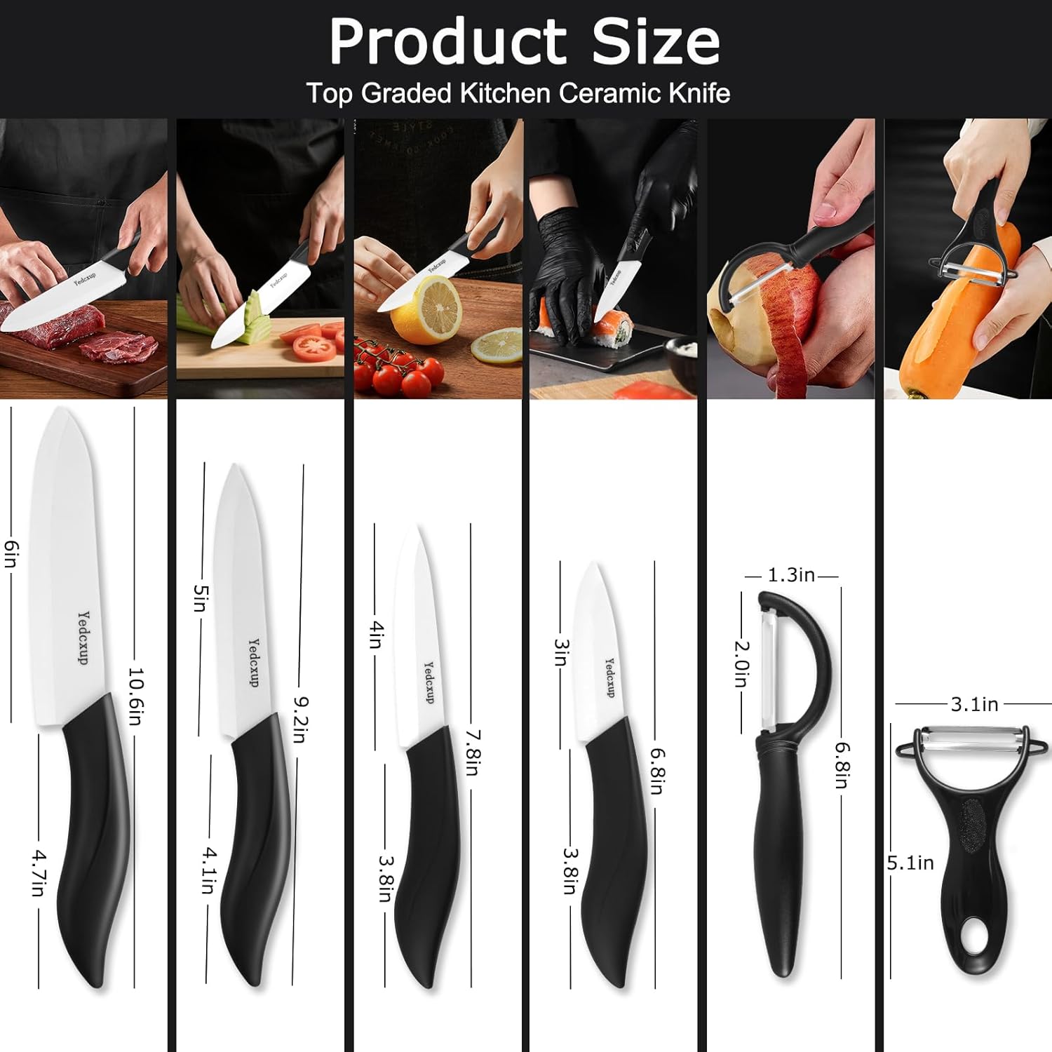 - 【FUNCTIONAL LAYOUT, APPLICABLE SCENARIOS】—Best Ceramic Kitchen knives have significant advantages, but it should be noted that their toughness is low, and they are not suitable for cutting hard objects (such as bones and frozen meat) or chopping hard to avoid chipping. Ideal for handling fruits and vegetables, delicatessen, soft meats, and more, it is ideal for those who are looking for fine cooking and healthy eating.