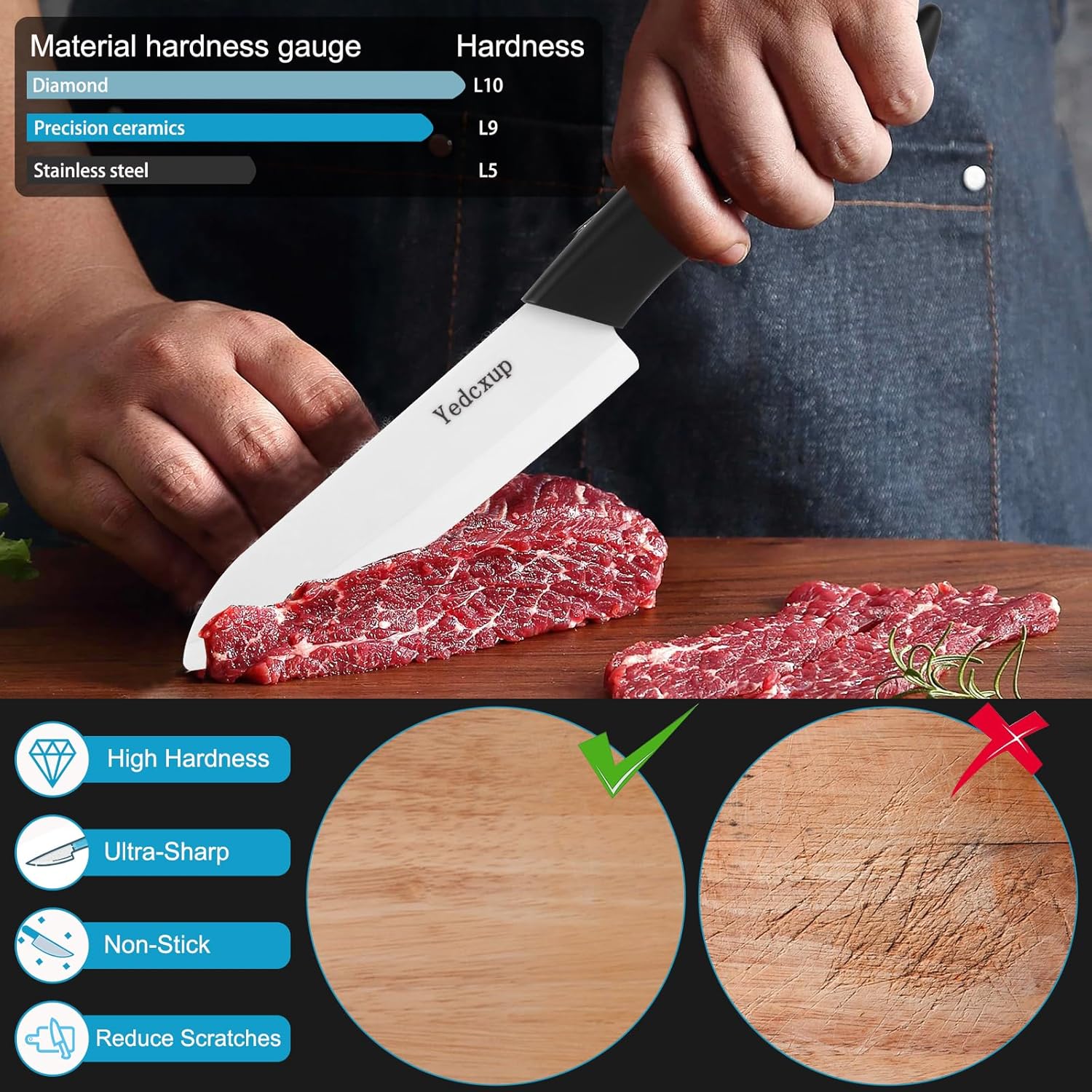 - 【NOT-RUST, NON-STICK】—Selected food grade zirconia ceramics, quenched at 2500°C high temperature, the texture is as dense as a rock, not rusty, non-Stick, and protects the stability and durability of kitchen cutting.