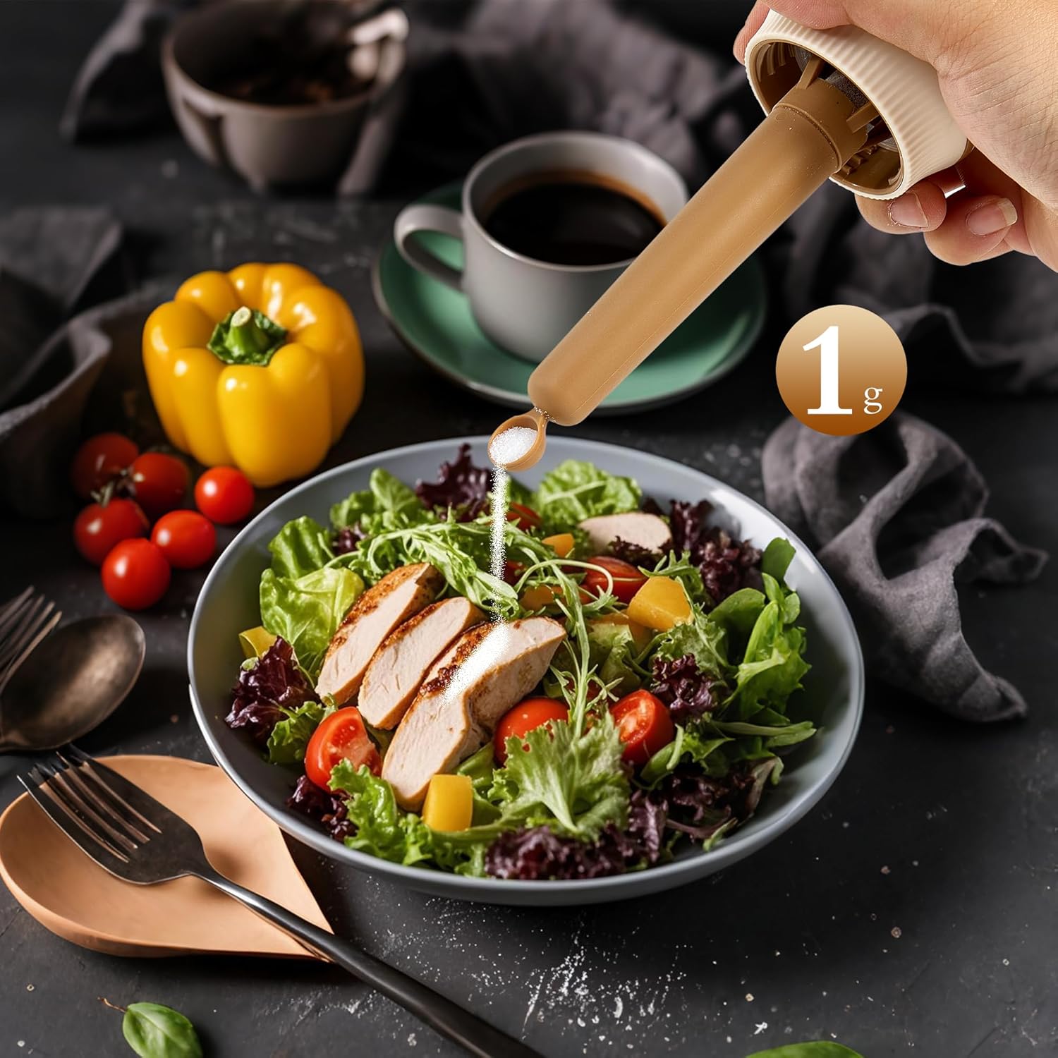 - 【Shake or Measure with Salt Shaker】Shaking 0.3g of fine salt particles or using the 1g built-in spoon for precise seasoning, perfect for sprinkling on meals or accurately measuring ingredients while cooking;