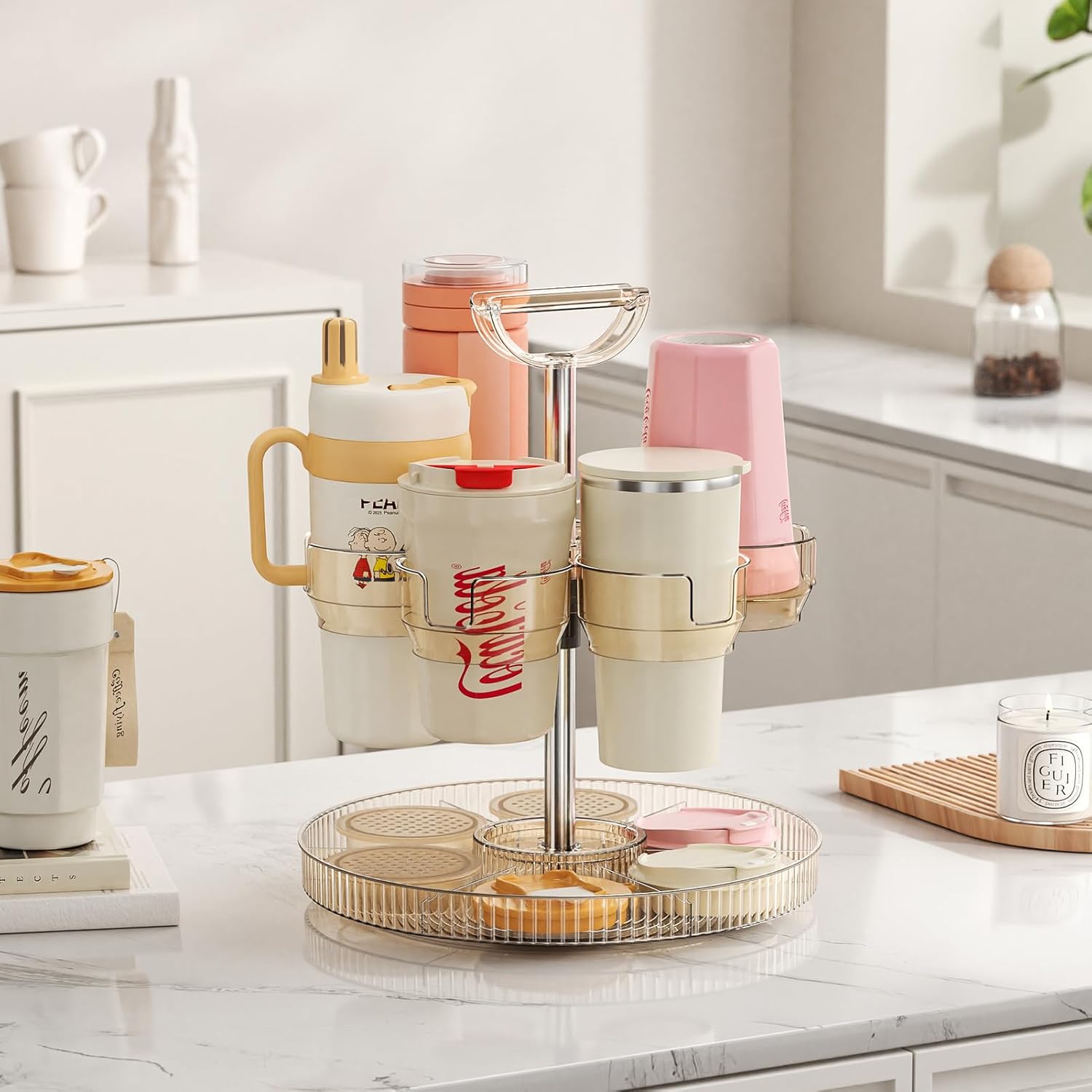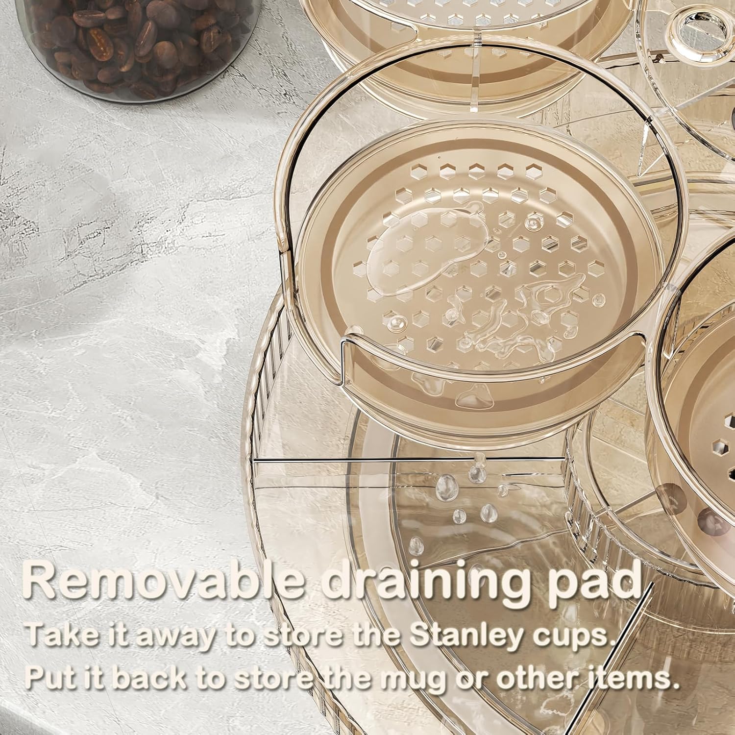 - Rotating Stanley Cup Holder, Portable Water Bottle Organizer for 6 Stanley 40 oz & Mug, Adjustable Lazy Susan Organizer for Table Top Cabinet Home Countertop Pantry Shelf Tumbler Lid Organizer