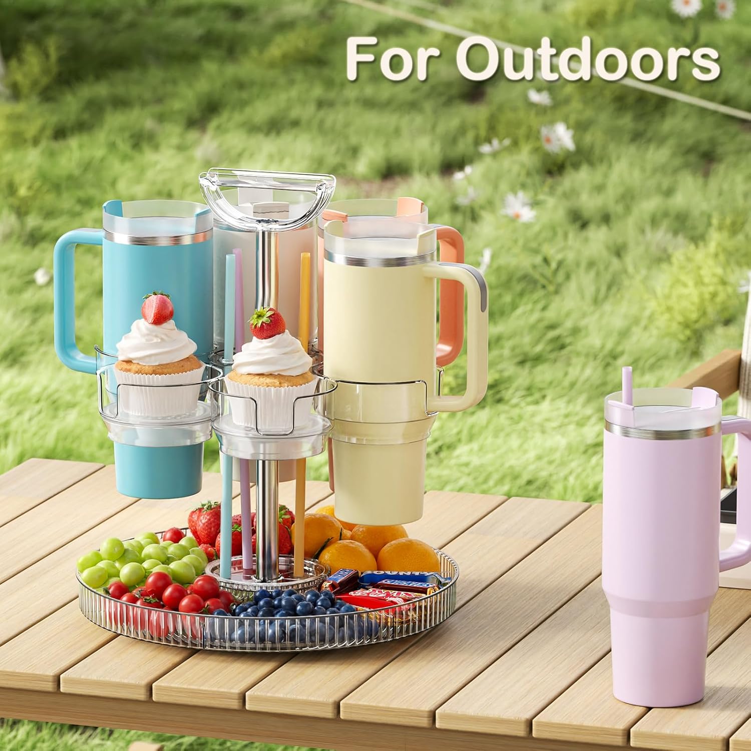 - Rotating Stanley Cup Holder, Portable Water Bottle Organizer for 6 Stanley 40 oz & Mug, Adjustable Lazy Susan Organizer for Table Top Cabinet Home Countertop Pantry Shelf Tumbler Lid Organizer