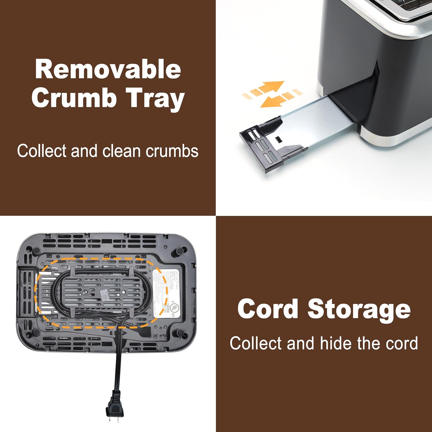 - ๐๐๐ฆ๐จ๐ฏ๐๐๐ฅ๐ ๐๐ซ๐ฎ๐ฆ๐ ๐๐ซ๐๐ฒ ๐๐จ๐ซ ๐๐๐ฌ๐ฒ ๐๐ฅ๐๐๐ง๐ข๐ง๐ - Cleaning is quick and simple thanks to the slide-out removable crumb tray. It catches every crumb to keep your kitchen clean, while the stainless steel surface stays smudge-free and sleek.