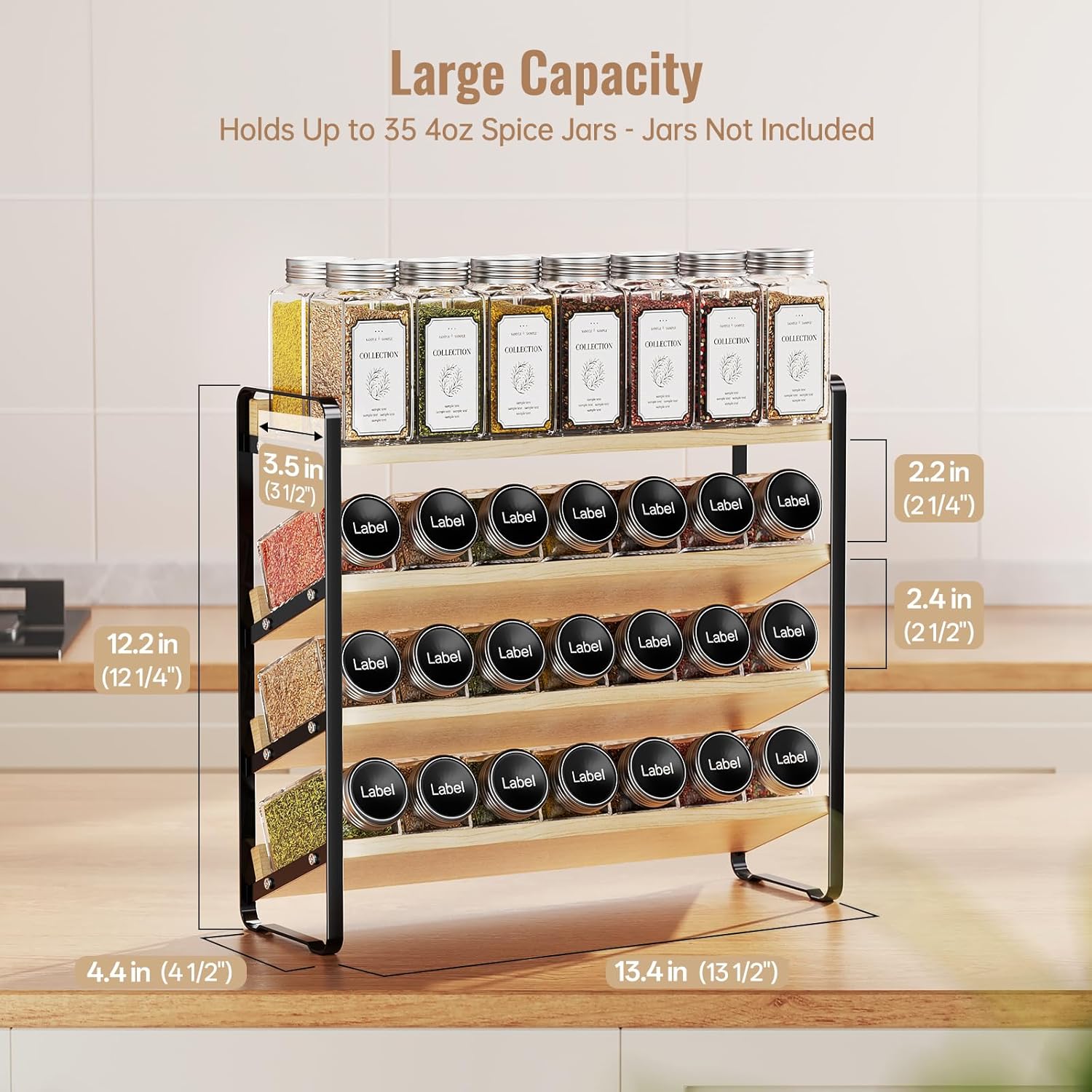 - Expanded Spice Capacity: Hosts up to 35 standard 4oz jars across 4 tiers, reclaiming your precious cabinet real estate. This vertical spice rack keeps your entire collection organized, visible, and within arm's reach, putting an end to frantic digging