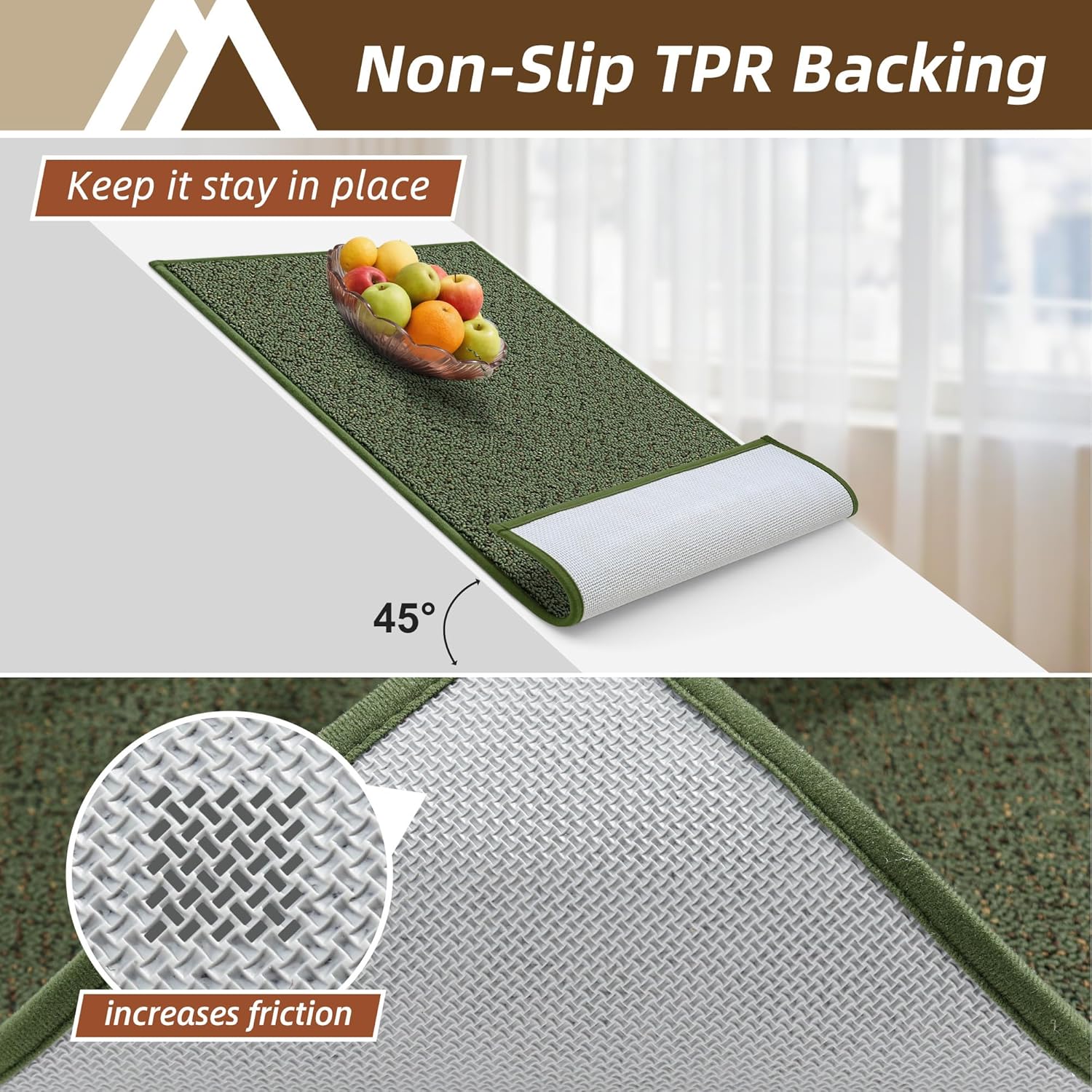 - Non Slip Backing:Our kitchen mats for floor are designed with a premium TPR non skid backing.Our non slip kitchen rugs prevent shifting or slipping during cooking or cleaning.The kitchen runner ensure stability and safety for kids, pets, and elders.NOTE: Please make sure the floor is clean and dry before placing