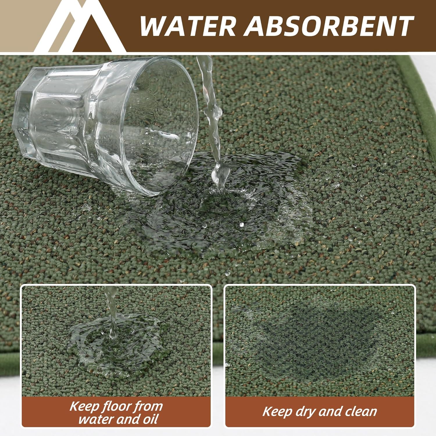 - Absorbent and Stain Resistance:Our kitchen rugs are made of premium Polypropylene fibers,featuring three-color dense yarns weaving, which can effectively absorb spilled oil and water.Our kitchen mats can keep your kitchen clean and dry.The kitchen rug sets can also protect the floor from your tableware breaking or damaging the floor