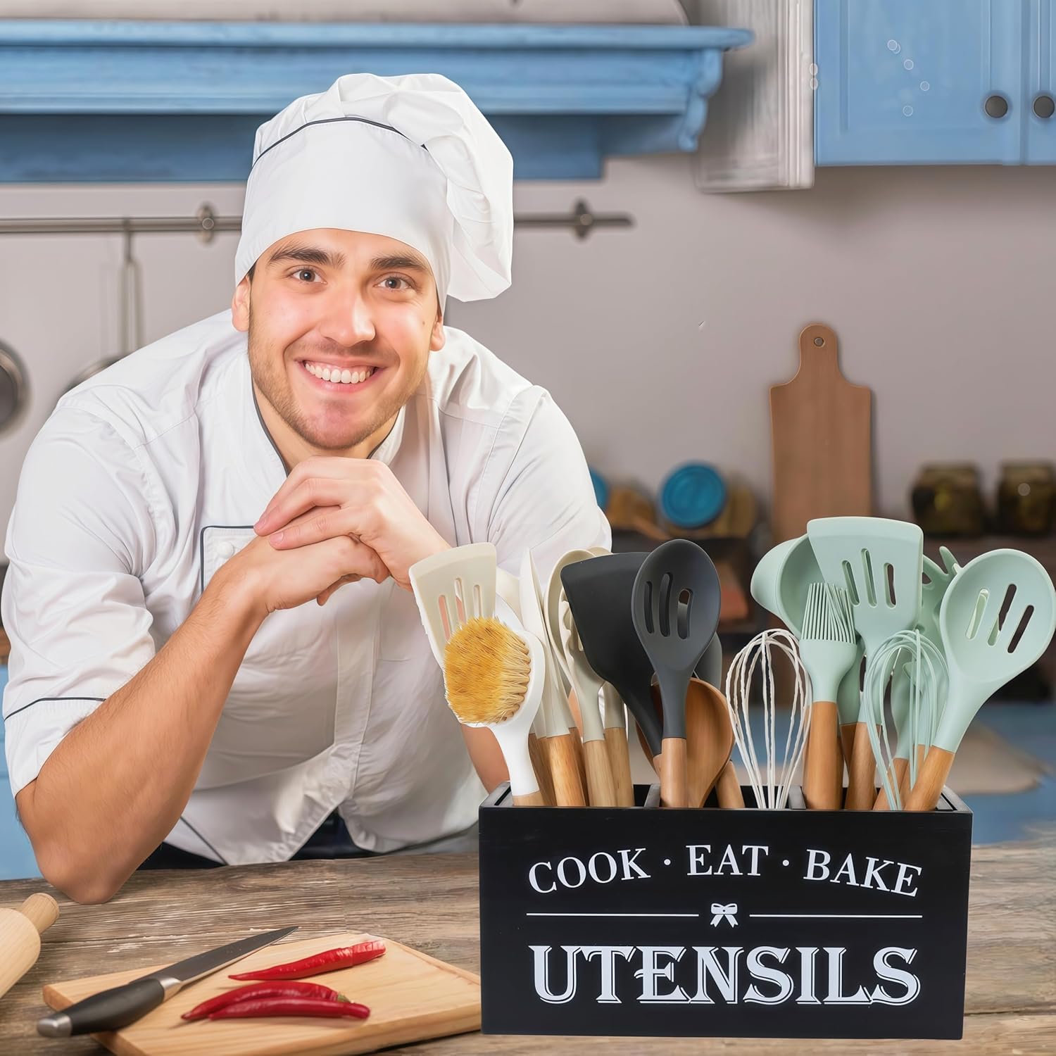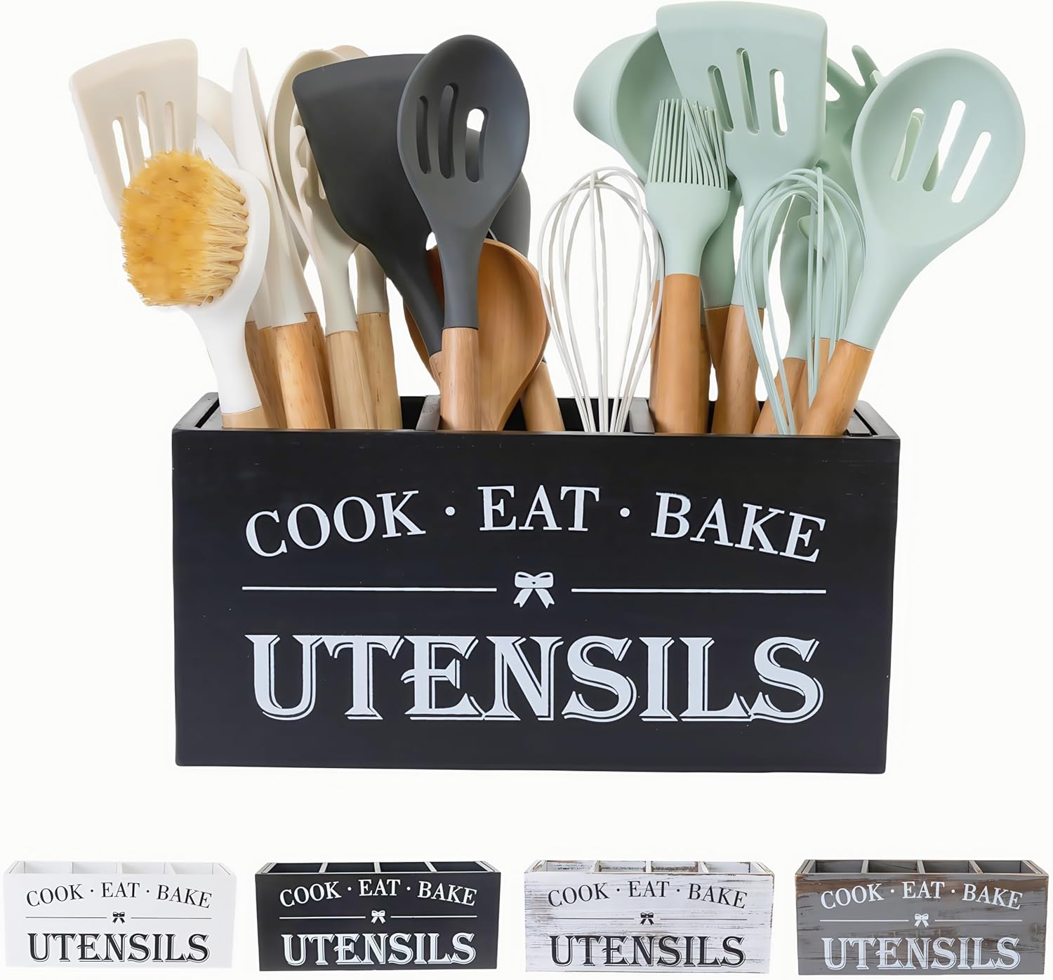 - Durability & Ease of Care: Made from robust wood, this utensil holder is built to last, withstanding daily use and the test of time. The smooth, finished surface is easy to clean; simply wipe with a damp cloth to maintain its beautiful appearance.