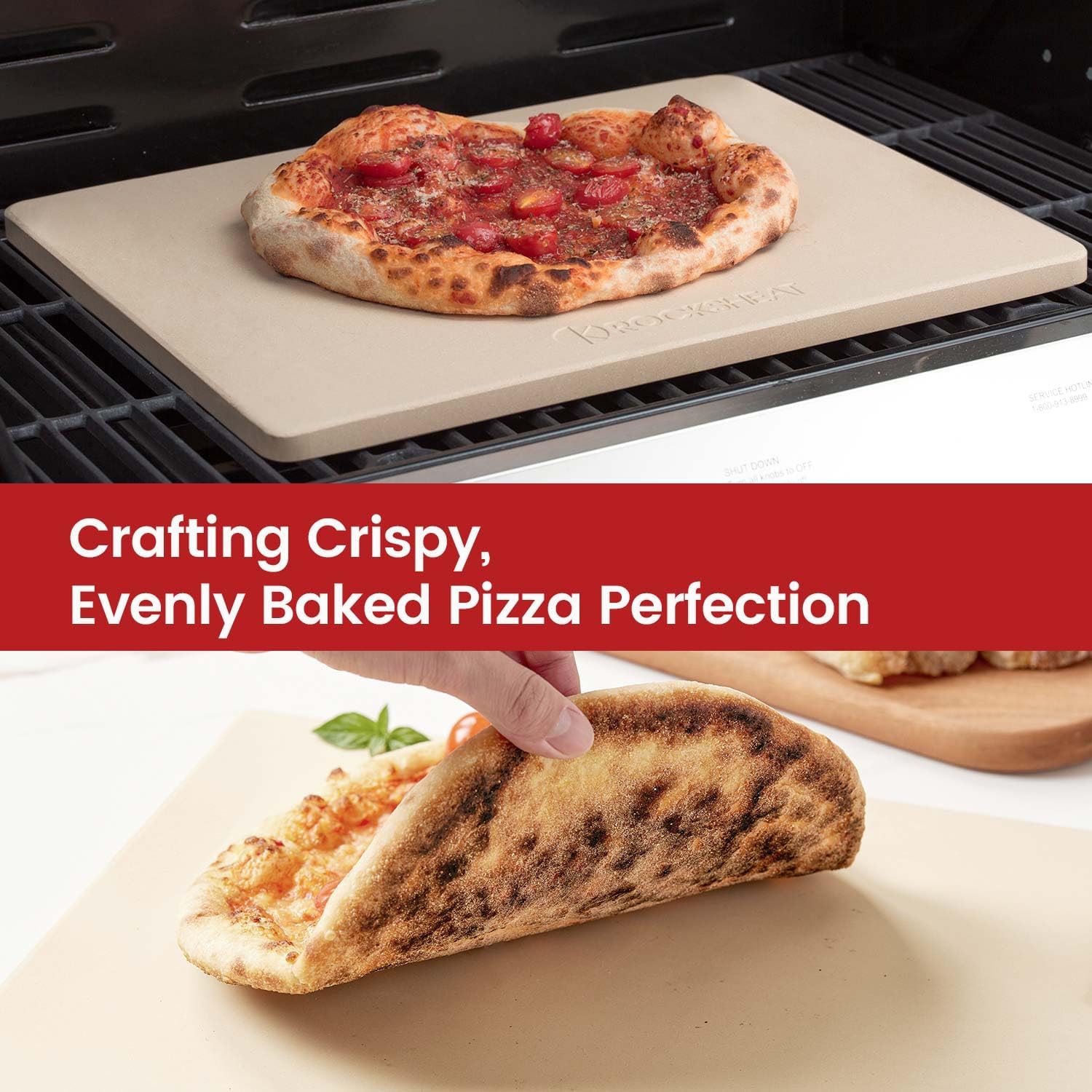 - Crafted from durable Cordierite material, this pizza stone efficiently removes moisture from dough, evenly distributes heat, and is heat-resistant up to 1400°F, ensuring consistently crispy crusts at home. Say goodbye to unevenly cooked pizzas and hello to perfection.