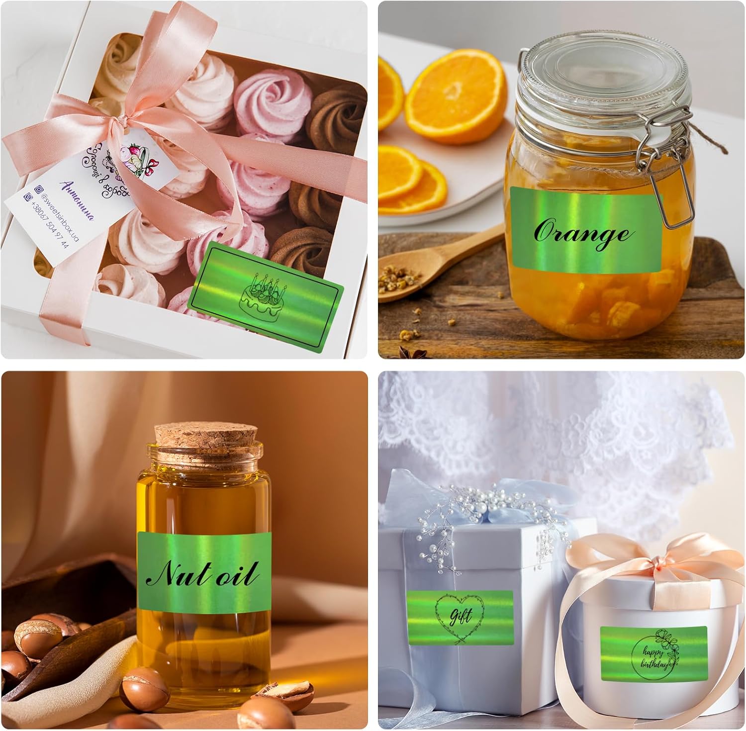 - Wide Applications in Life and Business: Make your brand and products stand out with captivating hologram labels! and they are more than just ordinary stickers. The rich, vivid, and lively colors will enhance your packaging and attract everyone's interest. The stickers are widely applied on gift wraps, greeting card stickers, thank you card envelopes, flower bouquets, packaging bags, candy bags, wedding favors, scented bath soaps, wine bottles, and jars, etc