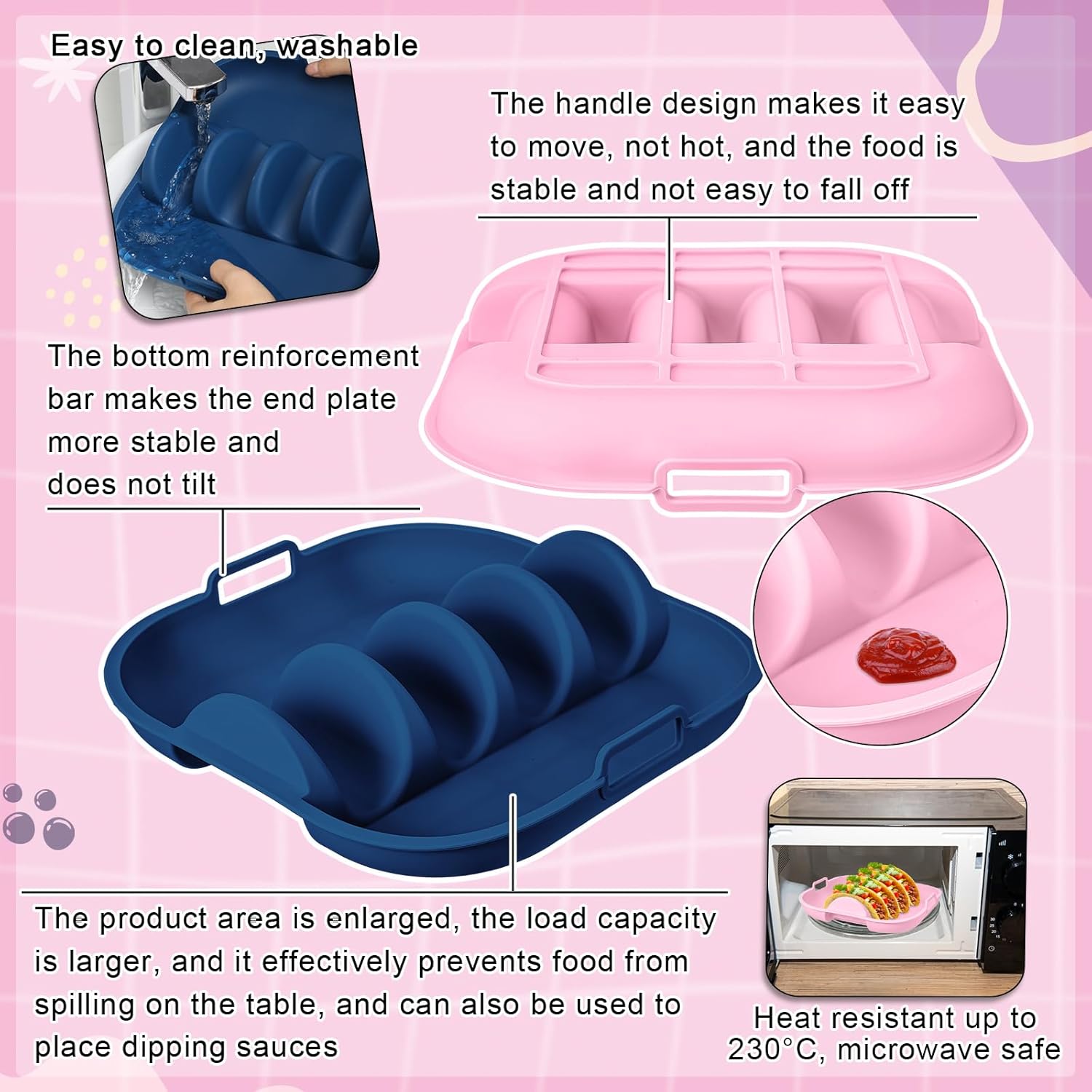 - Mexican Taco Meals: silicone Taco holder plates are here to securely hold tacos standing upright and stable, making it easier than ever to fill, serve, and enjoy your tacos; This set of 2 taco plates is a game-changer, no more spills or tacos tipping over, and say goodbye to tacos soaking in sauce