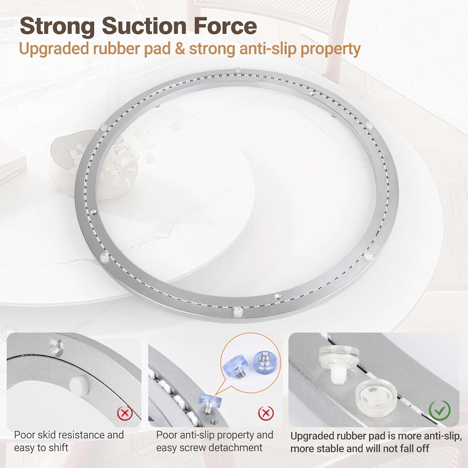 - SMOOTH ROTATION: The lazy susan bearing has 6 non-slip rubber feet, high-density steel balls sound-absorbing strip in the bearing enable you to rotate smoothly and evenly without effort
