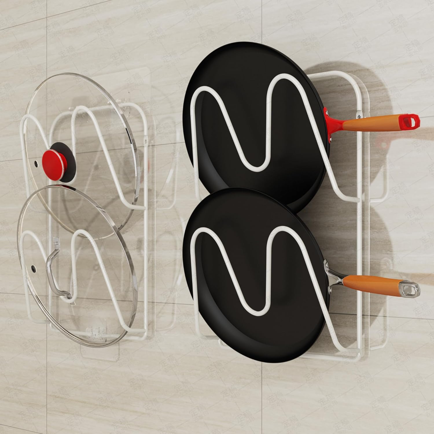 - LOSSLESS INSTALLATION: The 5.9-inch adhesive for smooth cabinets, or screw for textured walls/tiles. Install a wall mounted pot lid holders, and reheat leftovers faster than in the microwave! Great for use as a pots lid organizers inside cabinet