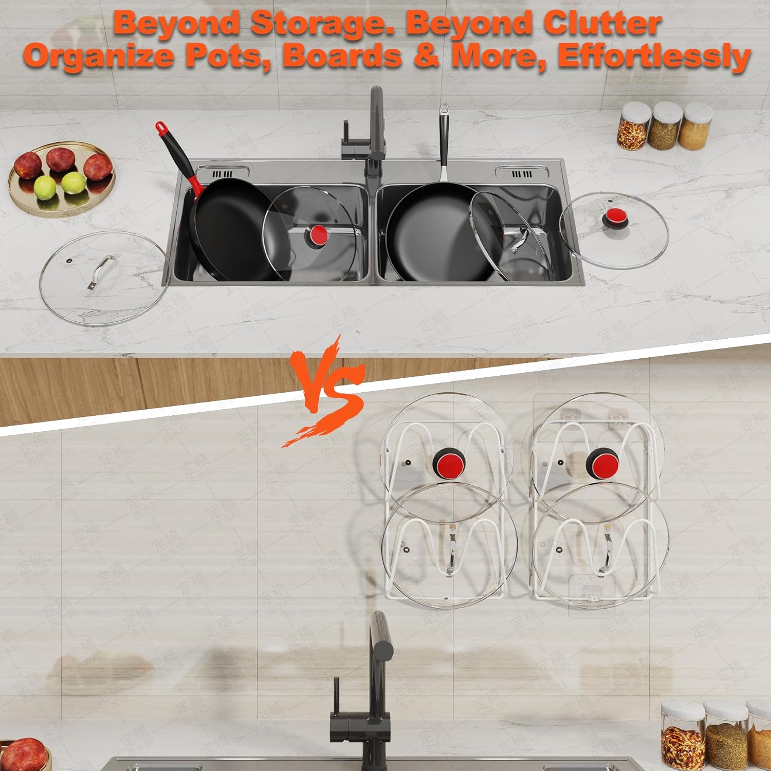 - SPACE SAVING POT LID ORGANIZER: Our pots and pans organizer under cabinet designed for small kitchens maximizes the storage space in your cabinet or wall, avoiding clutter while cooking. No more bending over to rummage through messy piles