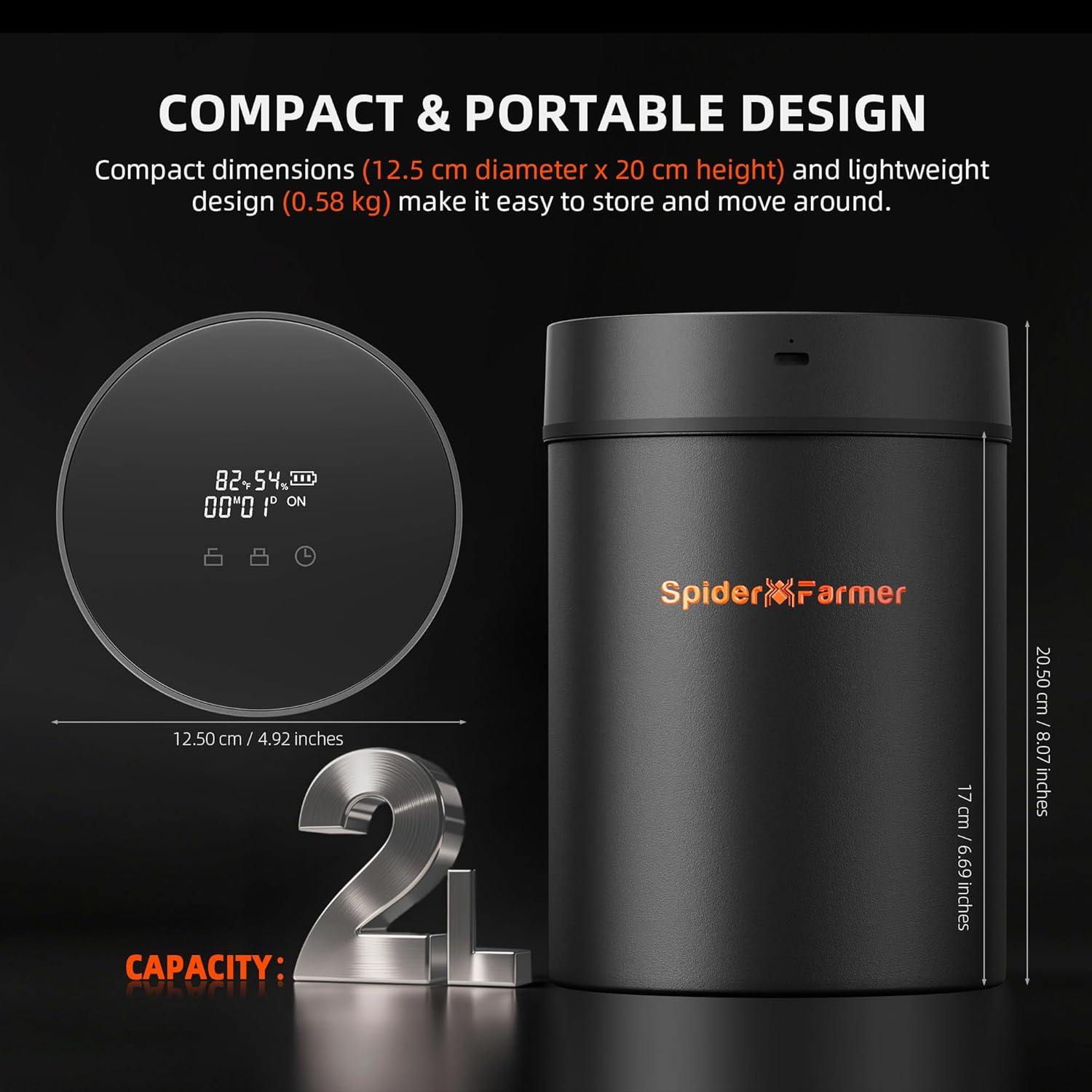Spider Farmer New Auto-Cure Smart Jar, 2L Portable Vacuum Seal Container with 4 x 62% Humidity Packs, Curing Jar Airtight Storage for Herbs, Mushrooms, Coffee, Spices, Flowers