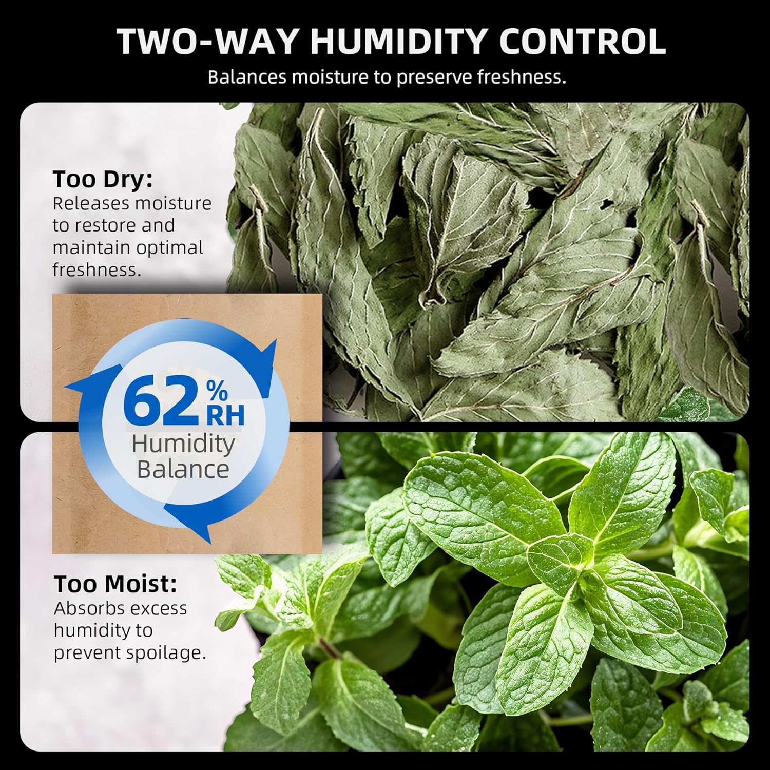 - 【Advanced Humidity Control】Equipped with four 62% two-way humidity packs, it maintains a stable internal environment. Each pack lasts up to 90 days, providing reliable year-round preservation, keeping stored items delicious and fresh.