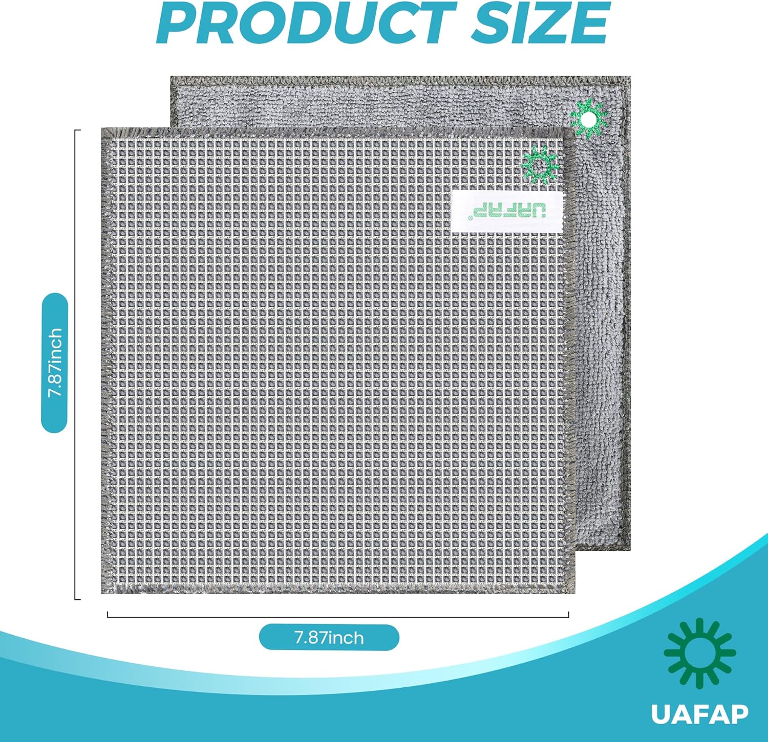 - Material Upgrading: Our wire dishwashing rag Made from 40% durable chemical fiber and 61% premium polyamide microfiber. Highly absorbent, streak-free, lint-free. Effectively traps dirt, dust, grease, and moisture. One side tackles tough stains, the other provides gentle cleaning/drying.