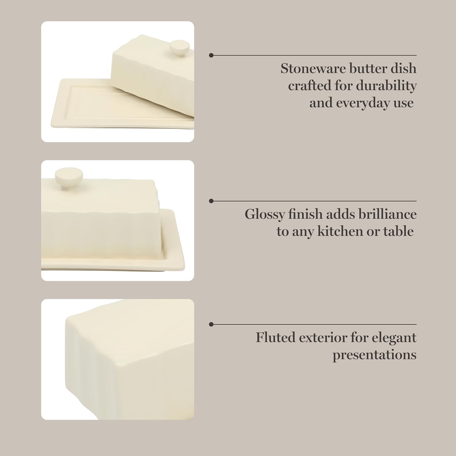 - CRAFTED FROM STONEWARE: Durable stoneware butter dish offers holds and plates a single stick of butter for an elegant presentation that complements a full basket of freshly baked bread. The lid allows for neater service and helps keep the butter fresh.