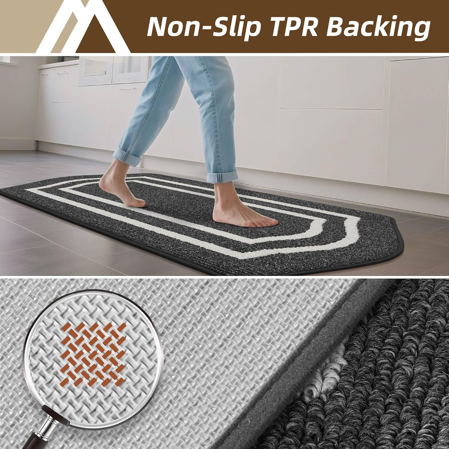 - COSYHOMEER Anti Slip Kitchen Mat:Our kitchen floor mat is designed with a premium TPR non slip rubber backing.Our non slip kitchen rugs prevent shifting or slipping during cooking or cleaning.The kitchen runner rugs ensure stability and safety for kids, pets, and elders.NOTE: Please make sure the floor is clean and dry before placing