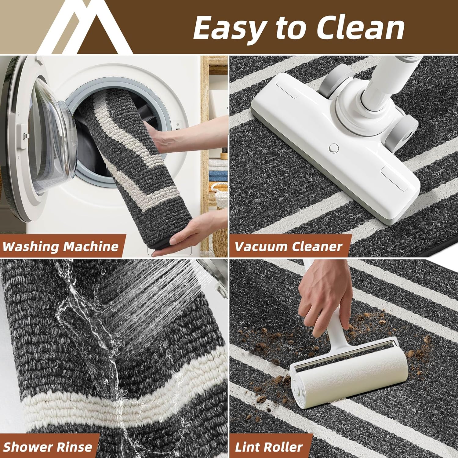 - Easy Maintenance and Clean: Our washable kitchen rugs are a breeze to clean. You can maintain the kitchen matt by vacuuming, and they are also machine washable, ensuring that the fibers don't shed easily due to our edge-locking technology. Do not use bleach or fabric softener. Our kitchen rugs and mats won’t fade or wear out and will remain like new even after repeated washing