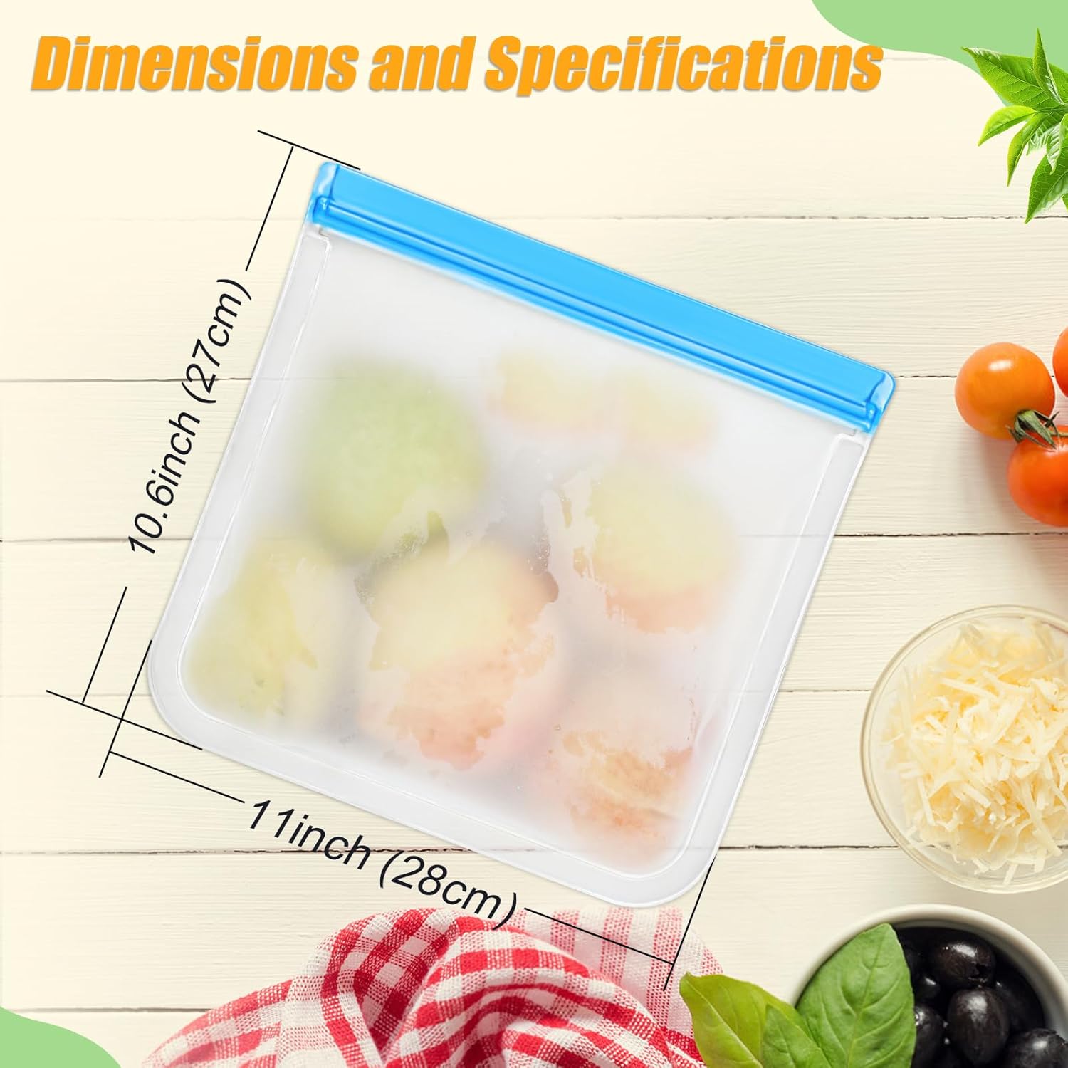 - 【Fridge Organizers, Keeping Food Fresh】The transparent sides of the reusable storage bags allow for easy labelling with a water-based marker, making the clear storage bags easy to categorise and keep your fridge organised. After writing the freezer bags, gently wipe with a damp cloth to remove any marks. These reusable food storage bags are perfect for storing vegetables and fruits, keeping fresh, and for storing raw and marinated meats, locking in their flavor and freshness