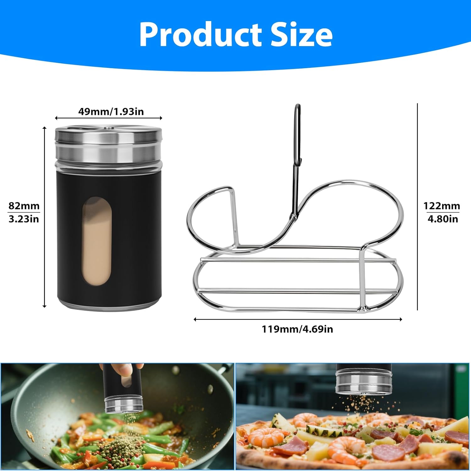 - Made of lead-free glass and stainless steel with adjustable holes for repeated use,With glass viewing ports. the Mini Salt and Pepper Shaker Set comes with an easy spice rack and is perfect for countertop organizers!