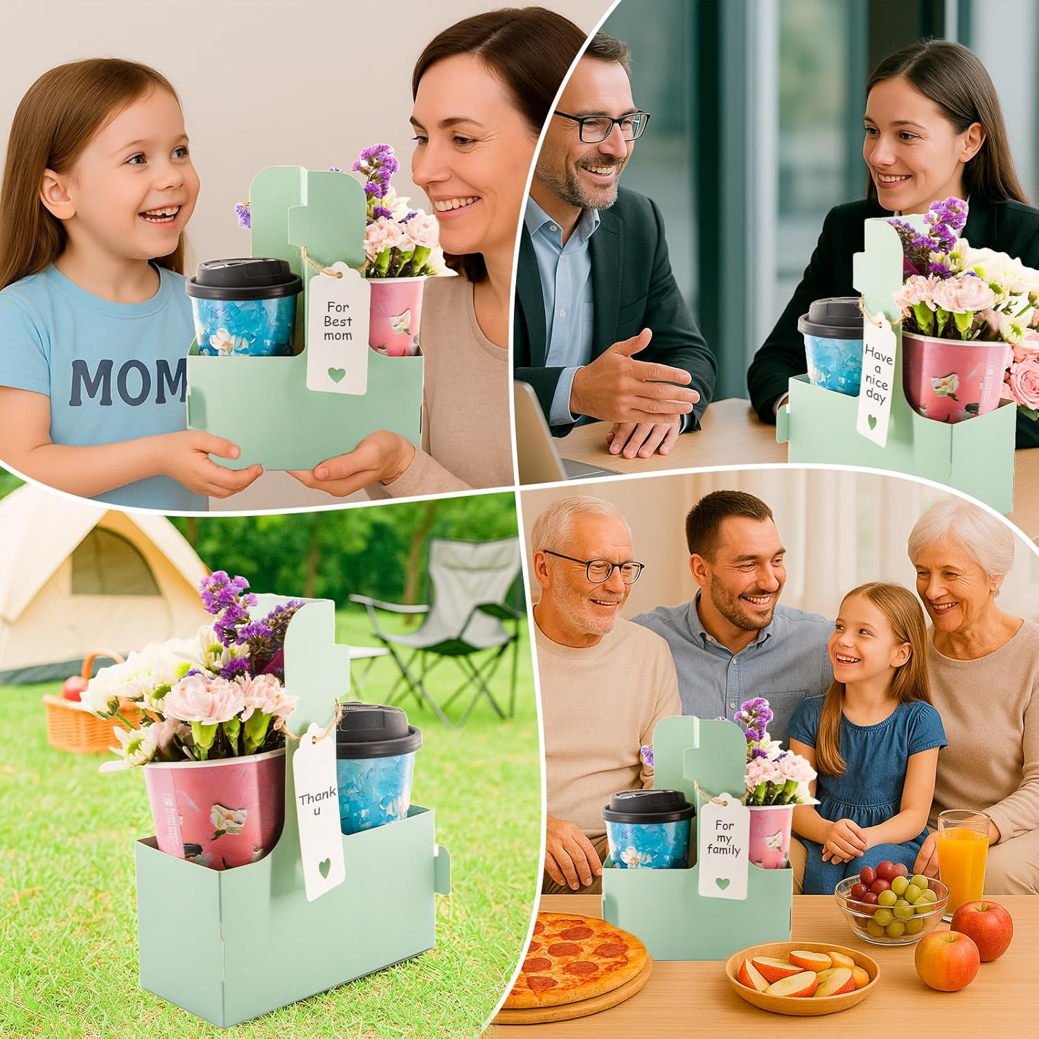 - Sufficient quantity: Our coffee holder package contains a total of 10 green cardboard two-cup drink holders, and also comes with love cards and rope. You can write their message or wishes on the card and place them on the paper cup holder with the rope. It is suitable for Teacher Appreciation Week and Mother's Day, Valentine's Day and other festivals