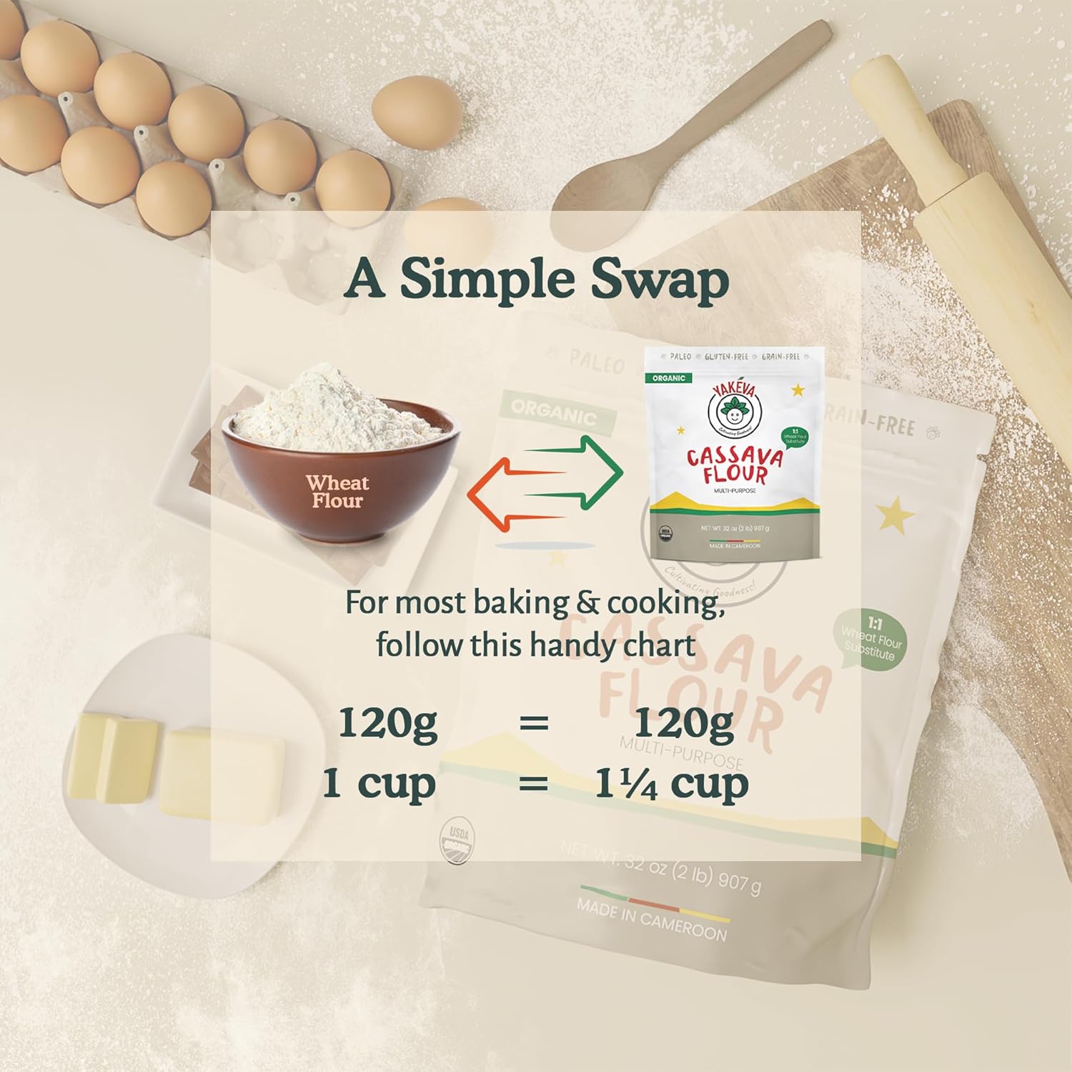 YAKÉVA Organic Cassava Flour - Gluten-Free Flour, Grain-Free, Nut-Free, Wheat Substitute, Paleo, Non-GMO, 100% Yuca Root, No Additives & Preservatives