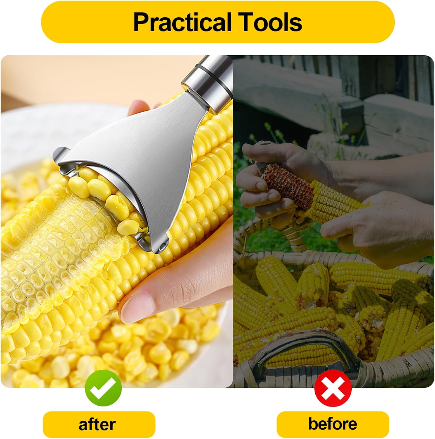 - Effortless Peeling: Effortlessly remove multiple rows of corn kernels in a single swipe. The simple yet effective design makes peeling corn quick and easy, saving you precious time and energy in the kitchen. Perfect for busy chefs and home cooks.