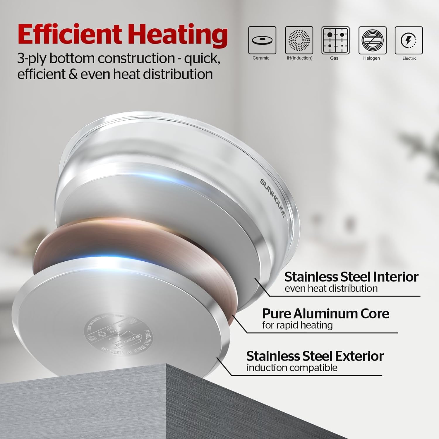 - Induction Pot For All Stovetops - This stock pot has a magnetized base (3-ply construction) that allows for even heat distribution, making it compatible with all stovetops, including induction, gas, ceramic, electric, halogen, etc.