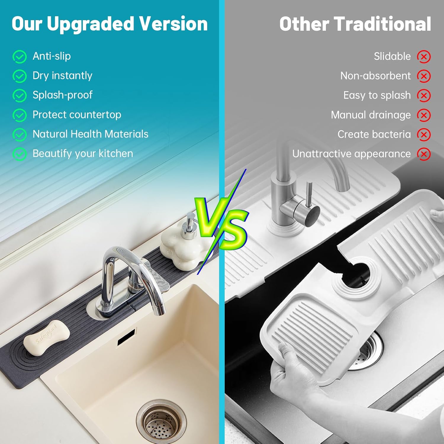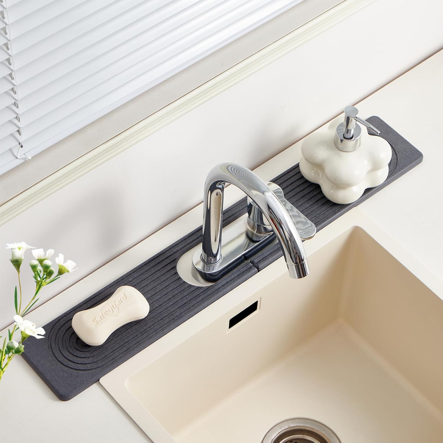 - Super Absorbent: This diatomaceous earth faucet mat absorbs water instantly, keeping your kitchen or bathroom countertop dry and clean. No more water stains or puddles around your sink.promoting a hygienic environment.