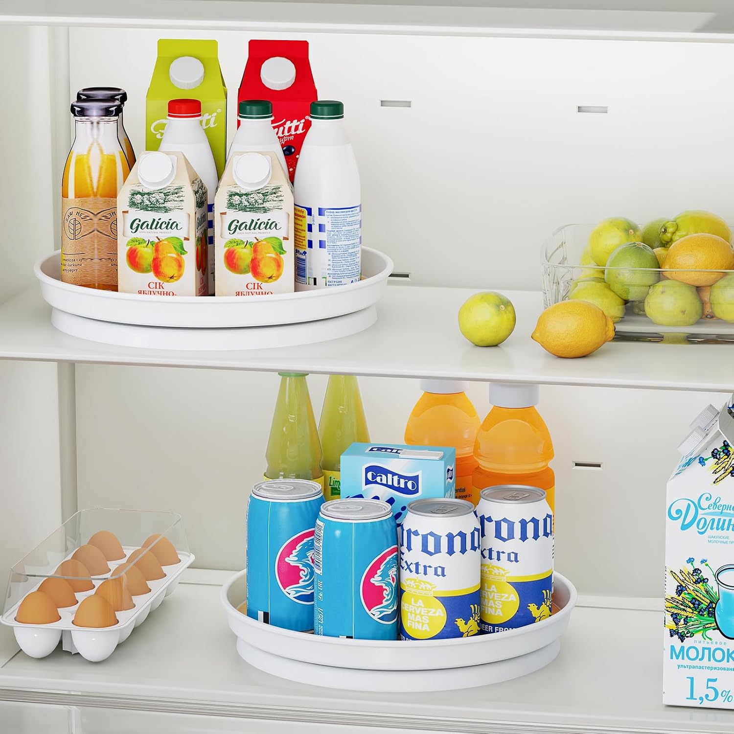 - Optimal Size: This lazy susan set includes two 10-inch lazy susan turntable—perfect for spice jars, condiments, snacks, or toiletries. Compact yet spacious, each tray fits neatly into cabinets, countertops, pantries, refrigerators, and bathrooms for effortless organization
